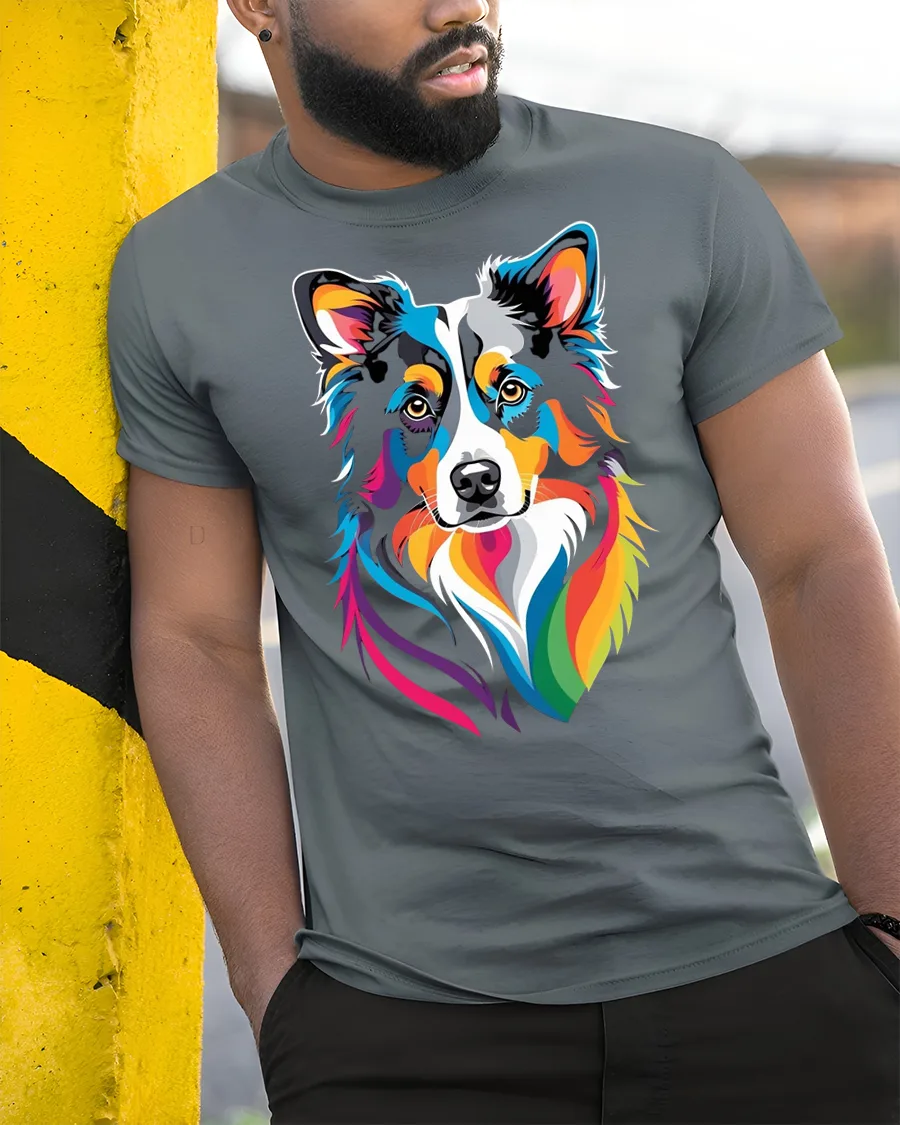 The border collie t shirt blends modern artistic flair with a comfortable casual style that stands out in everyday outfits.