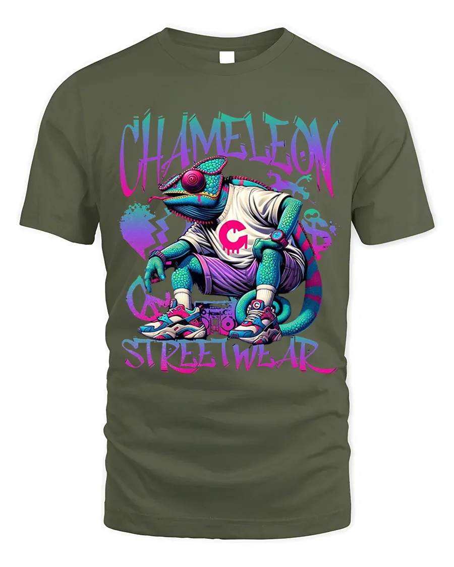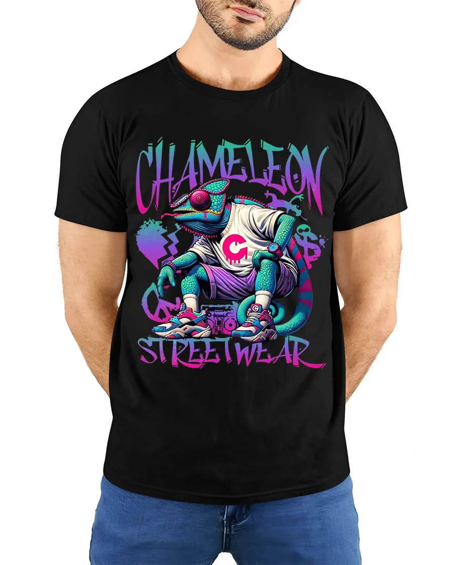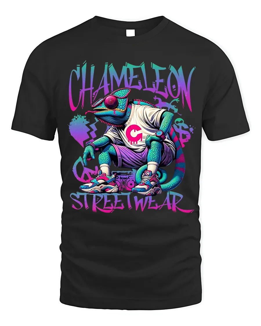 Step up your street style with this Colorful Chameleon Streetwear Urban Art Graphic T-Shirt, featuring a bold and vibrant design that blends urban culture with wild creativity.