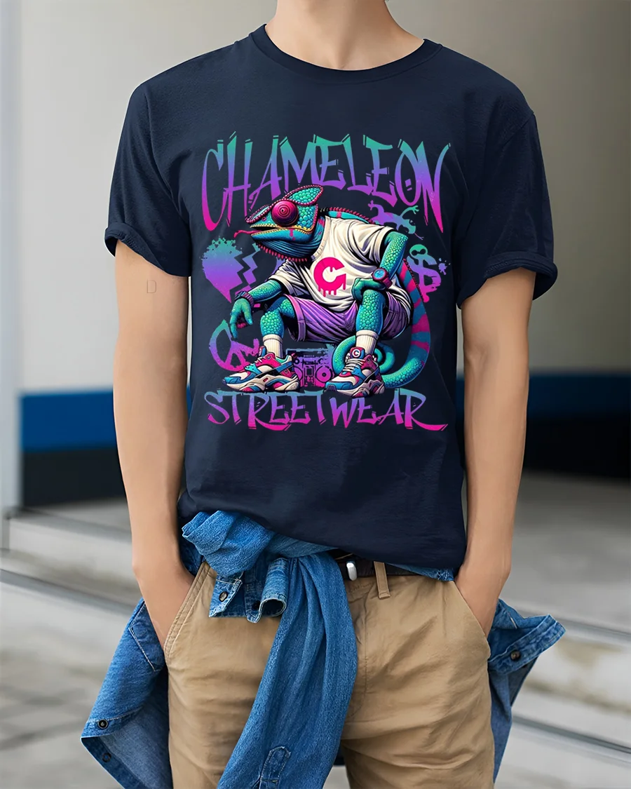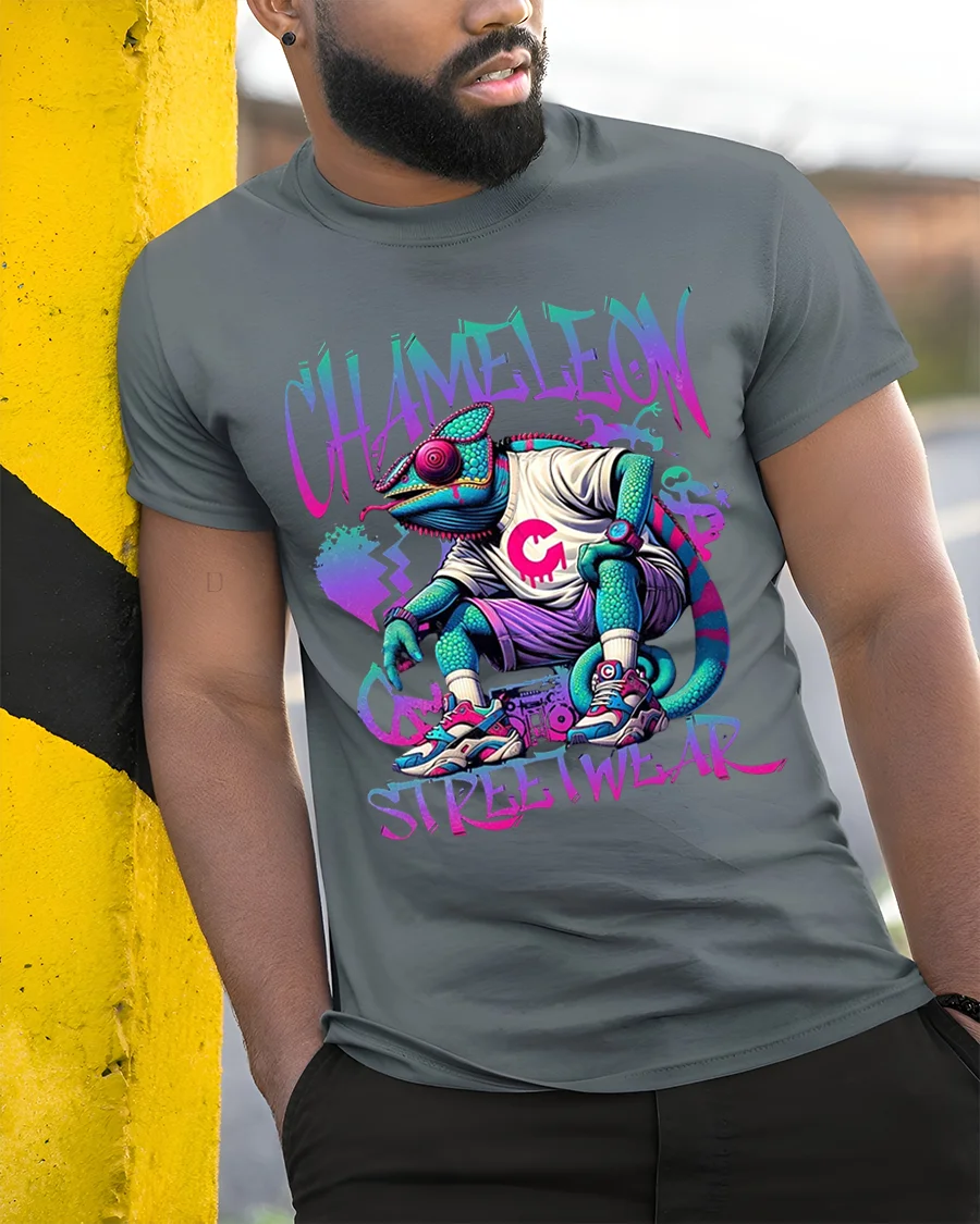 The Colorful Chameleon Streetwear Urban Art Graphic T-Shirt is ideal for those who love to express individuality through fashion.
