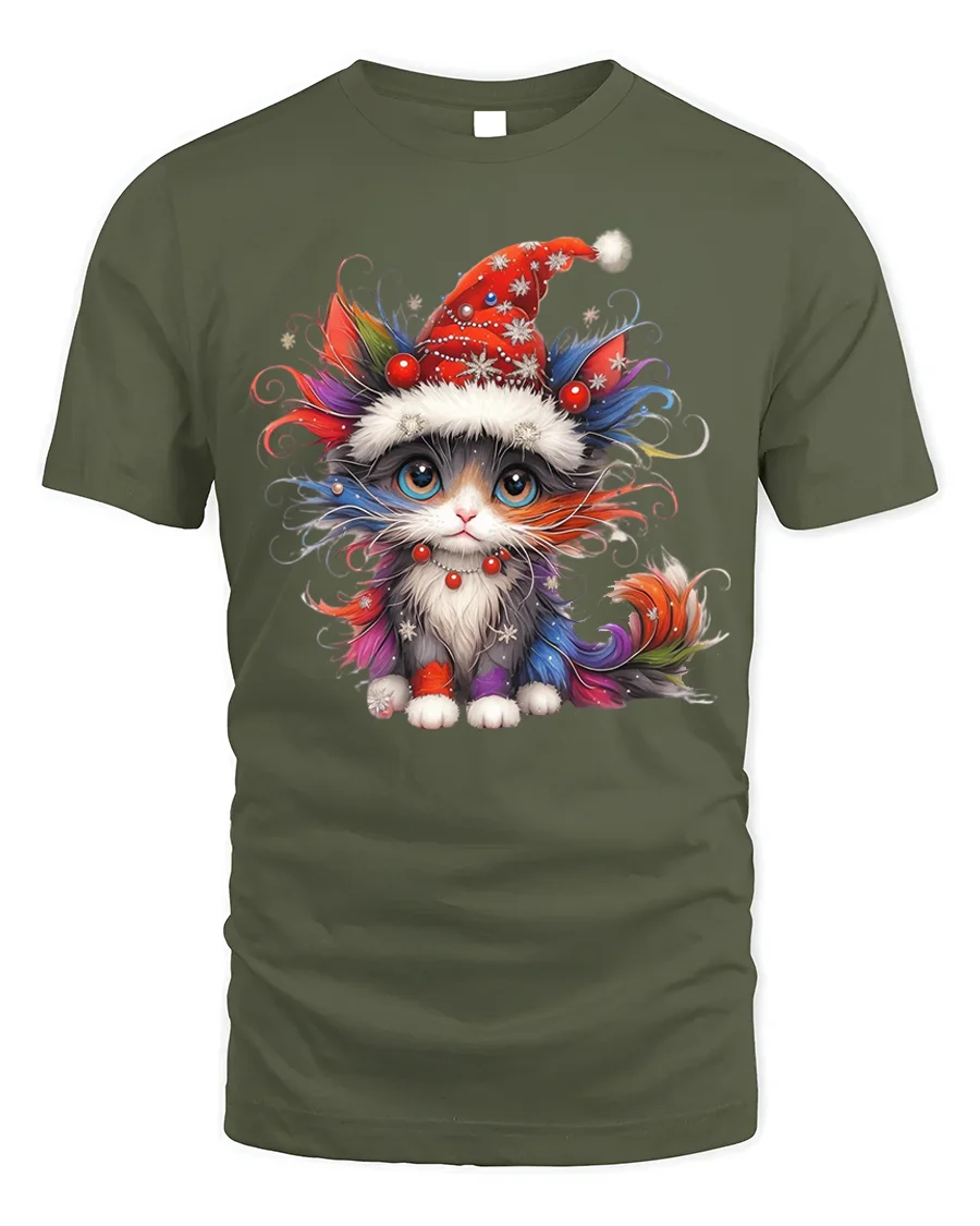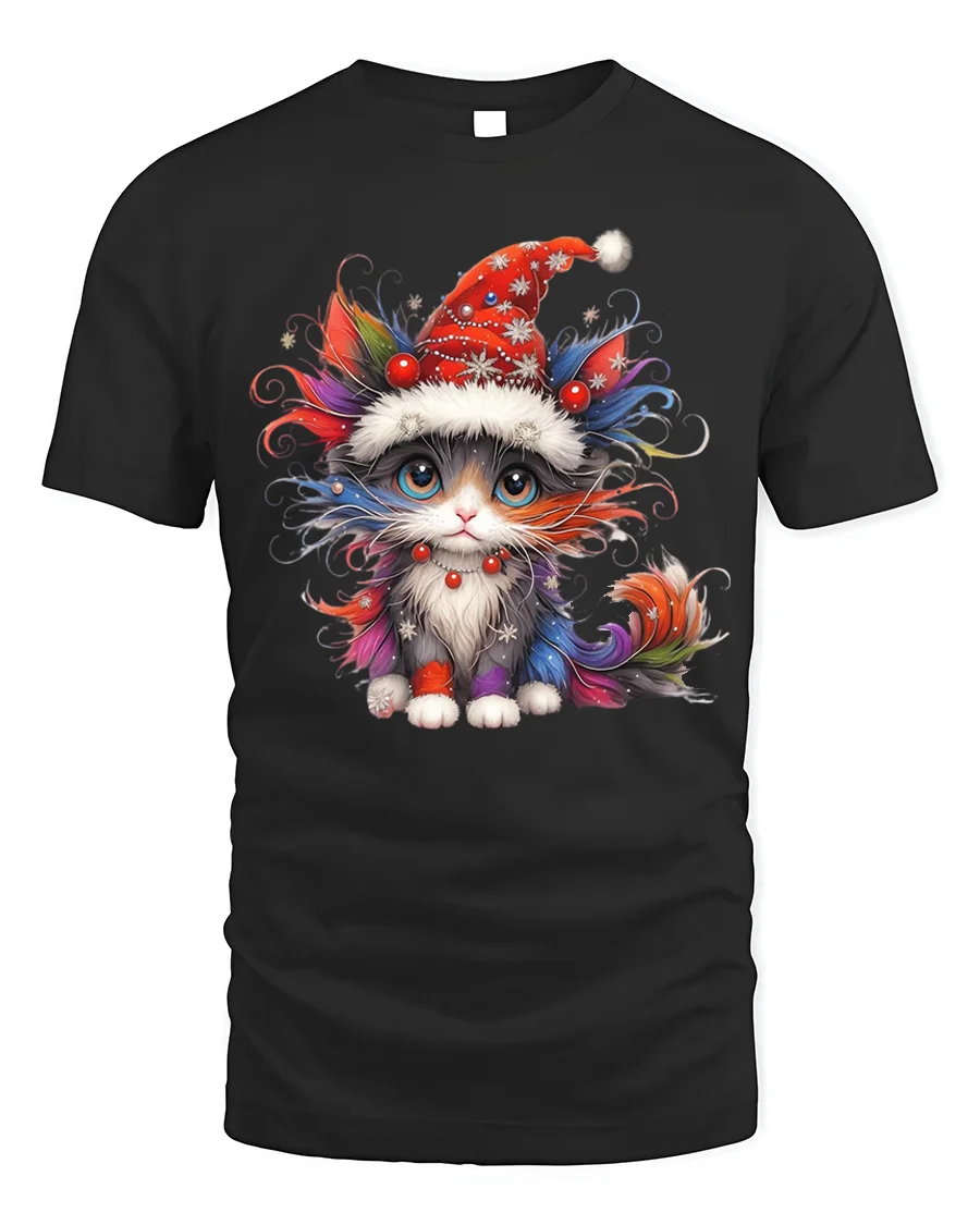 Our Colorful Christmas Cat Art T-Shirt for Holiday Lovers brings joyful holiday charm to your wardrobe with its vibrant, artistic design. Featuring an adorable kitten wearing a festive Santa hat, this tee adds the perfect touch of color and cheer to your seasonal outfits. Its high-quality print makes the artwork stand out, giving it a playful and eye-catching style that’s ideal for cat lovers of all ages.