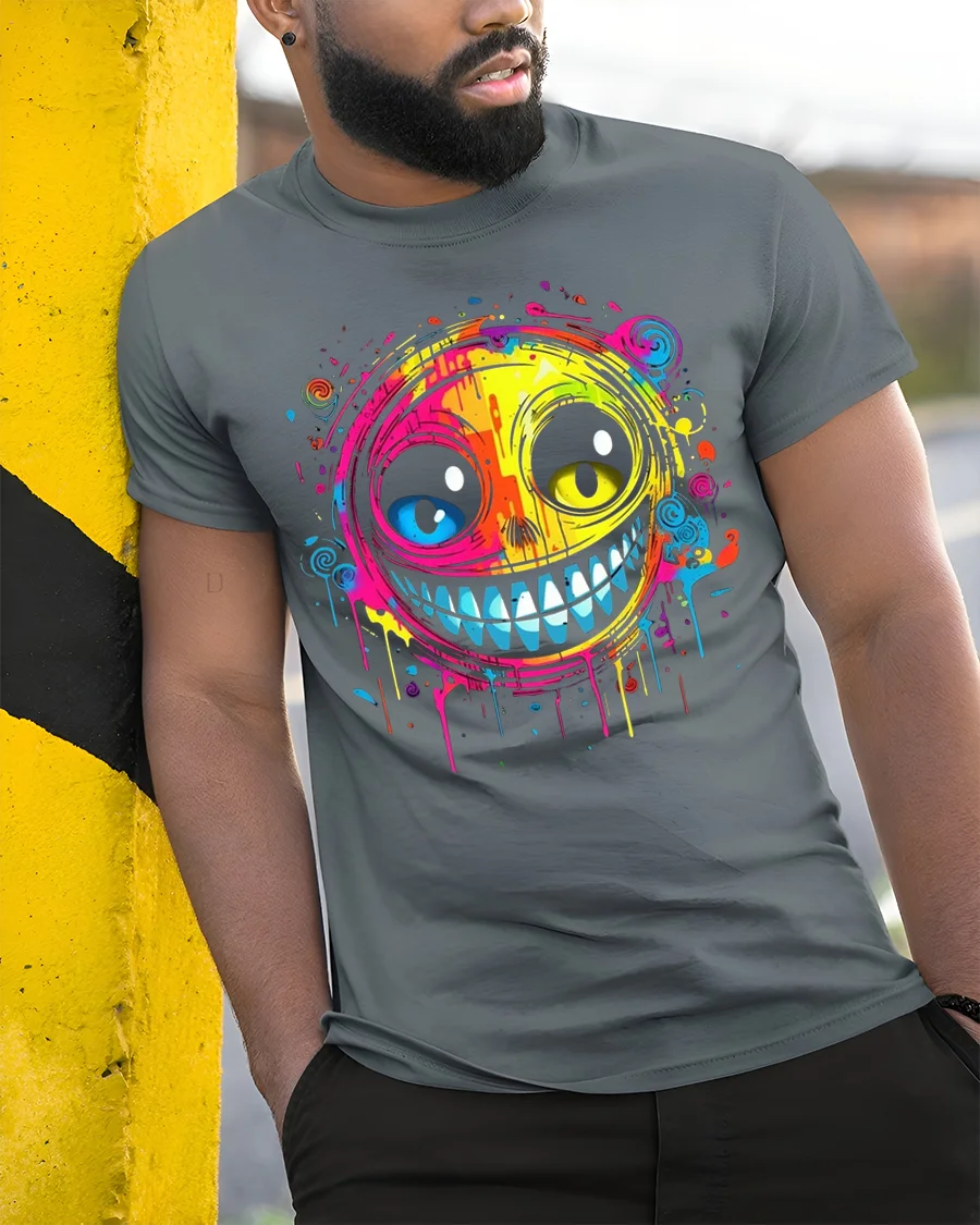 Crafted from soft, breathable fabric, this t-shirt ensures all-day comfort while showing off its high-quality print. The intricate details—from the toothy grin to the dripping paint textures—are designed to stay bright and sharp wash after wash. Whether you wear it to concerts, festivals, casual hangouts, or simply to express your creative personality, this tee delivers both comfort and confidence.