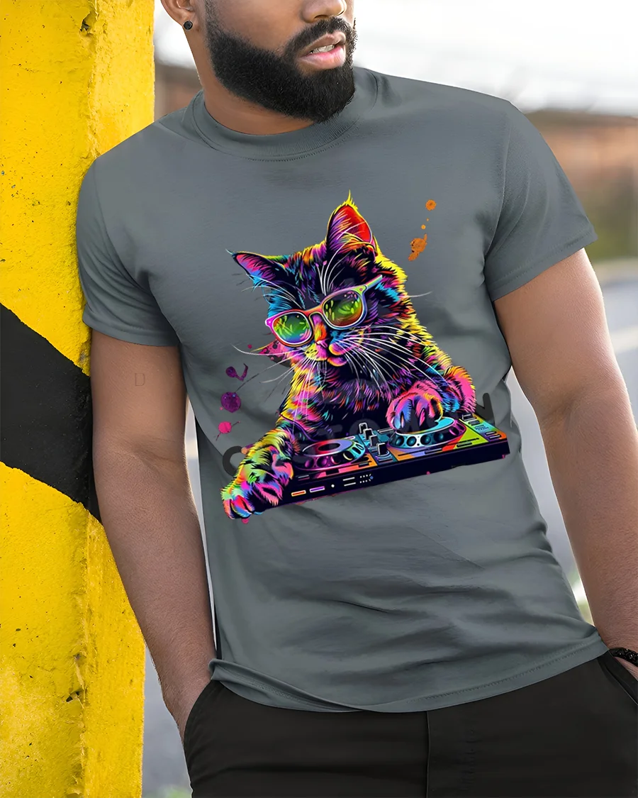 Crafted from soft, breathable cotton, this DJ cat t-shirt ensures all-day comfort and durability, whether you’re at a concert, club, or casual outing. The high-quality print captures every vivid color and detail, giving it a bold look that stays bright wash after wash. It’s ideal for anyone who loves combining humor, art, and rhythm in their personal style.