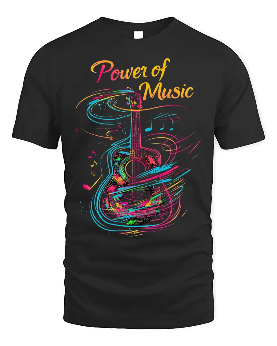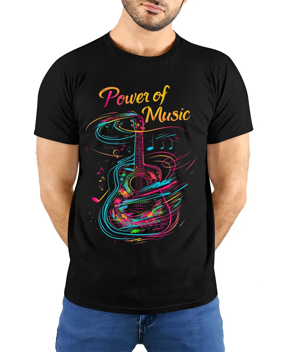 Whether you’re strumming your guitar, attending a concert, or just vibing with your favorite tunes, the Colorful Guitar Art Power of Music Graphic T-Shirt brings the rhythm to your wardrobe. Express your passion. Wear the art. Feel the beat.