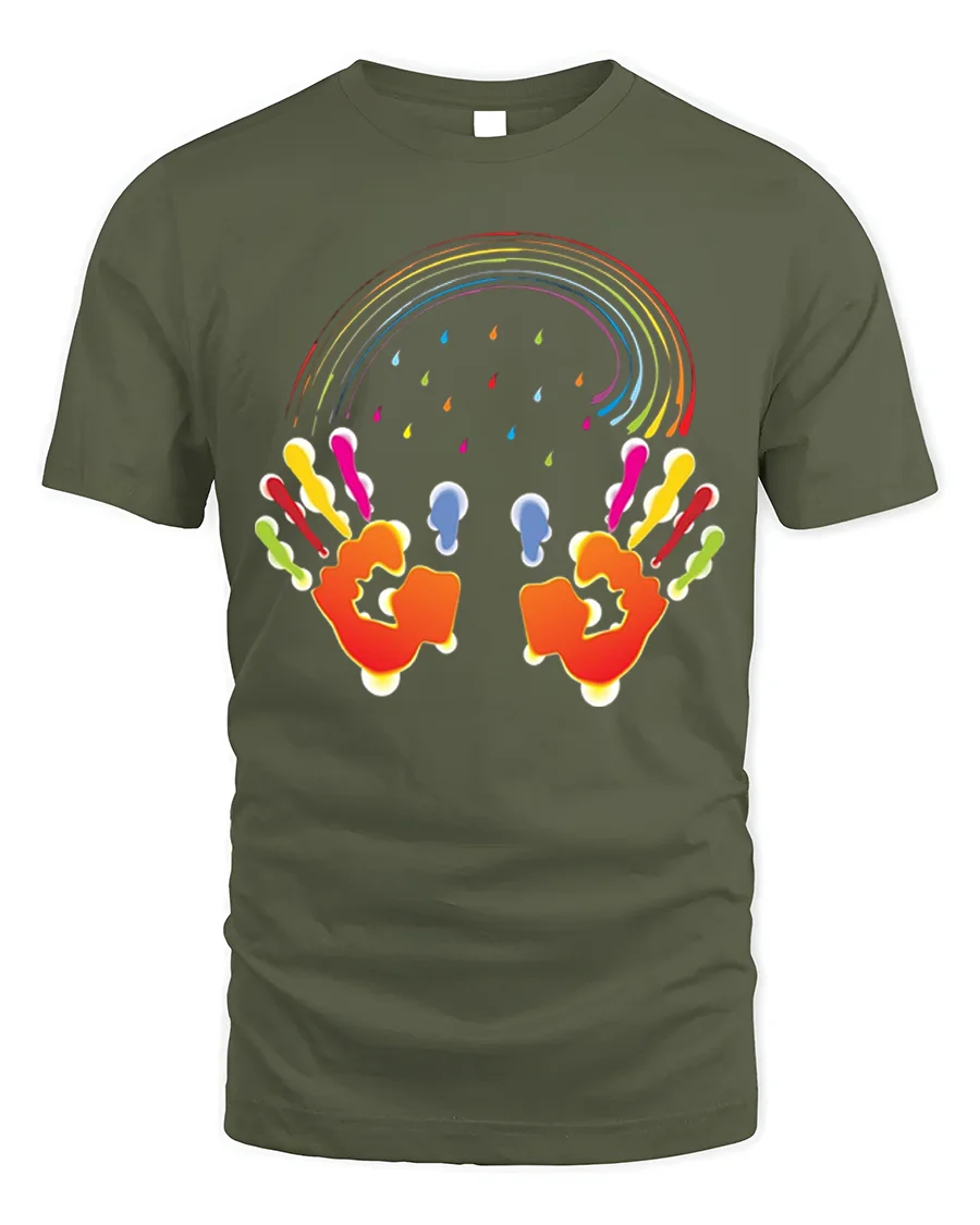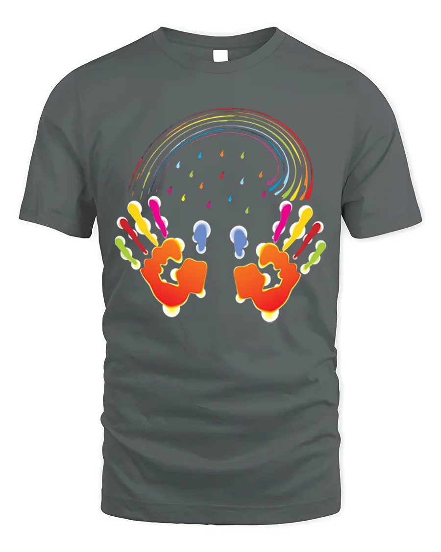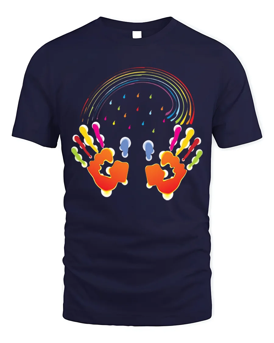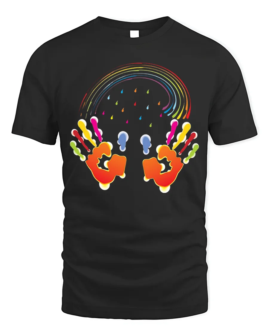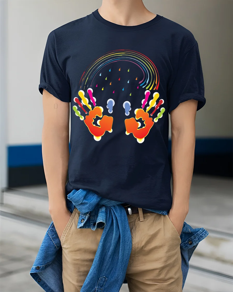 The Colorful Handprint Rainbow Art Creative T-Shirt pairs effortlessly with jeans, shorts, or joggers, making it ideal for casual outings, creative events, or just spreading positive vibes wherever you go. Add a splash of color to your wardrobe and wear your creativity proudly.