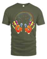 The graphic features two vivid handprints releasing a vibrant rainbow with dripping paint details, symbolizing imagination, unity, and joy. Its mix of bright colors and abstract style makes this tee a true standout piece for anyone who loves fun and expressive fashion.