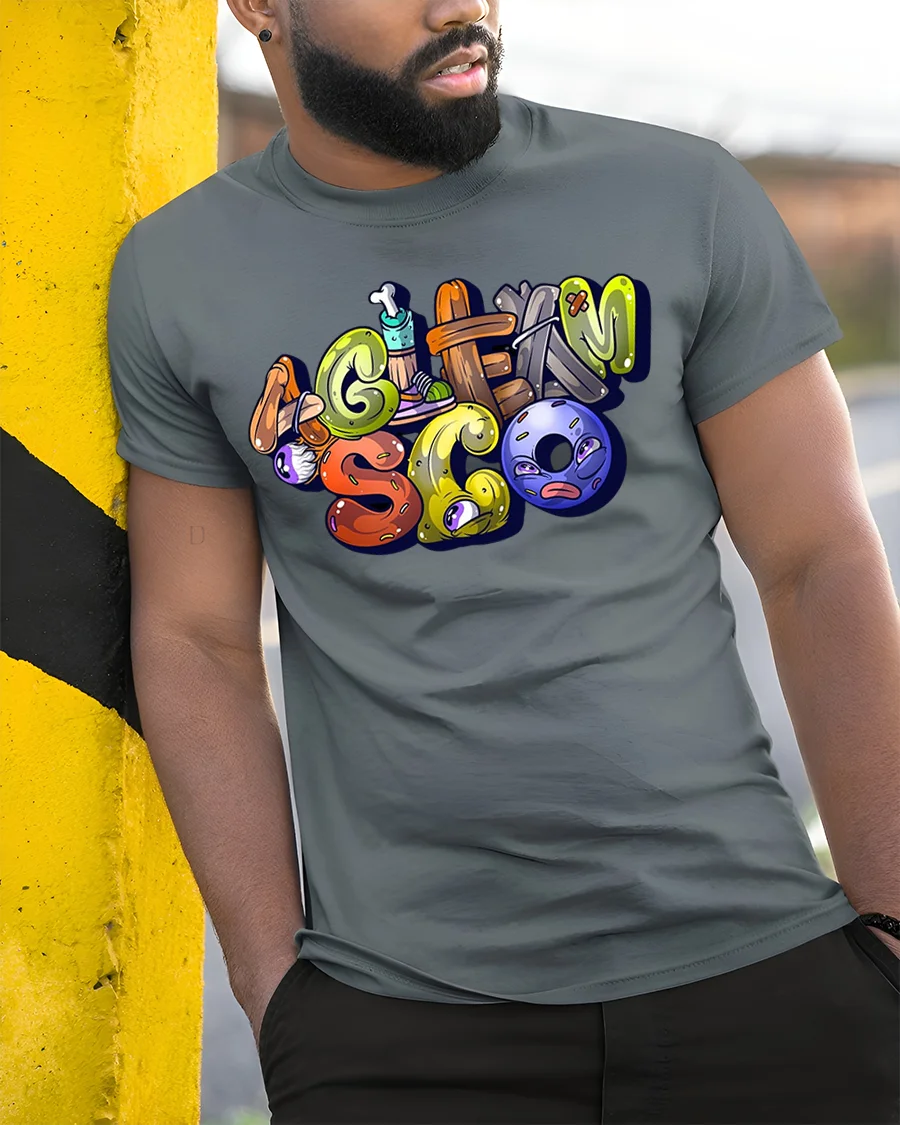 Crafted from soft, breathable fabric, this t-shirt offers everyday comfort along with a high-quality print that showcases the bright, detailed artwork. The mix of textures, colors, and cartoon-style elements makes it great for fans of street art, whimsical designs, and fun lettering styles. Whether you’re pairing it with jeans, jackets, or your favorite casual outfit, this tee brings energy and creativity to your look.
