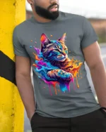 Show off your colorful personality with the Colorful Neon Cat Splash Art Graphic Print T-Shirt. Perfect for casual outings, art enthusiasts, or cat owners who love bold design. Pair it with jeans or shorts to create a stylish look that’s both modern and playful. This shirt isn’t just apparel—it’s wearable art for those who appreciate creativity and feline charm.