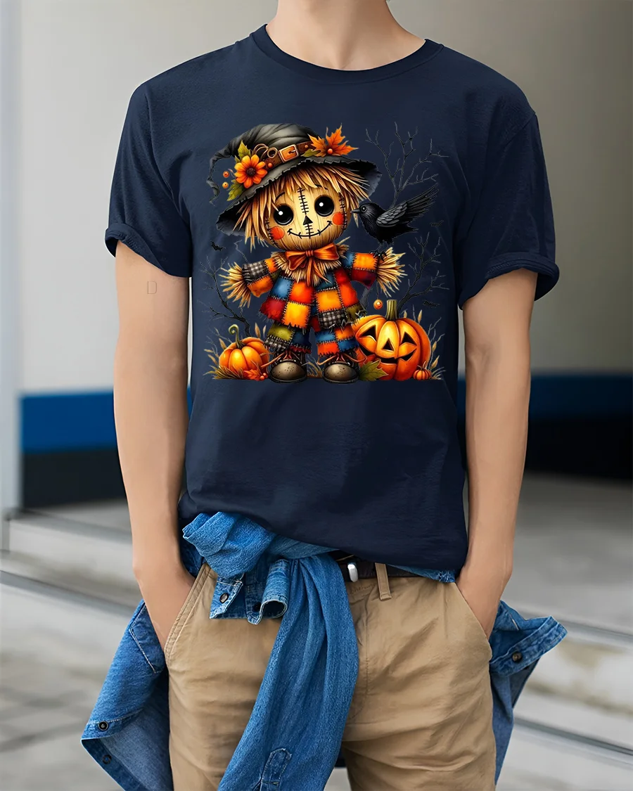 Designed for both comfort and style, this Halloween graphic tshirt is perfect for parties, pumpkin patch visits, haunted houses, or casual outings throughout the fall season. The cheerful scarecrow design stands out against the dark background, making it a great conversation starter at any event. Whether you’re trick-or-treating, attending a fall festival, or simply enjoying cozy autumn evenings, this shirt is sure to bring smiles.