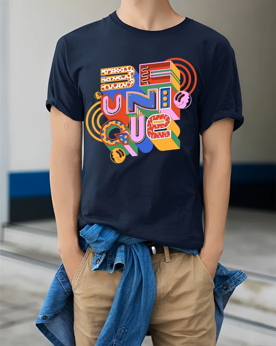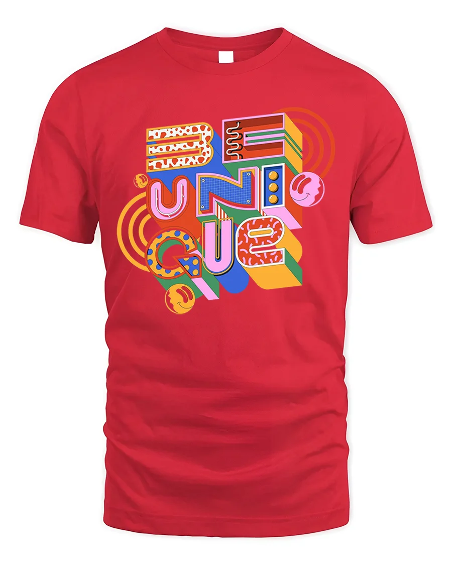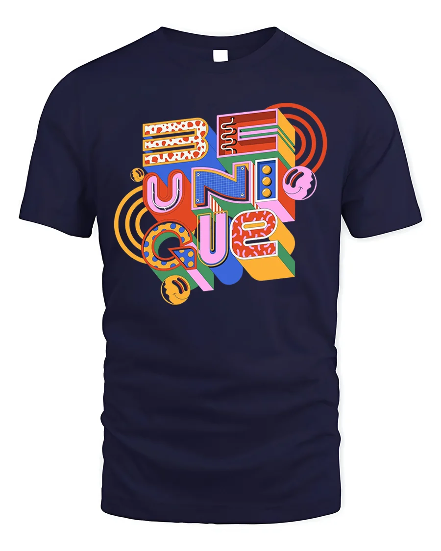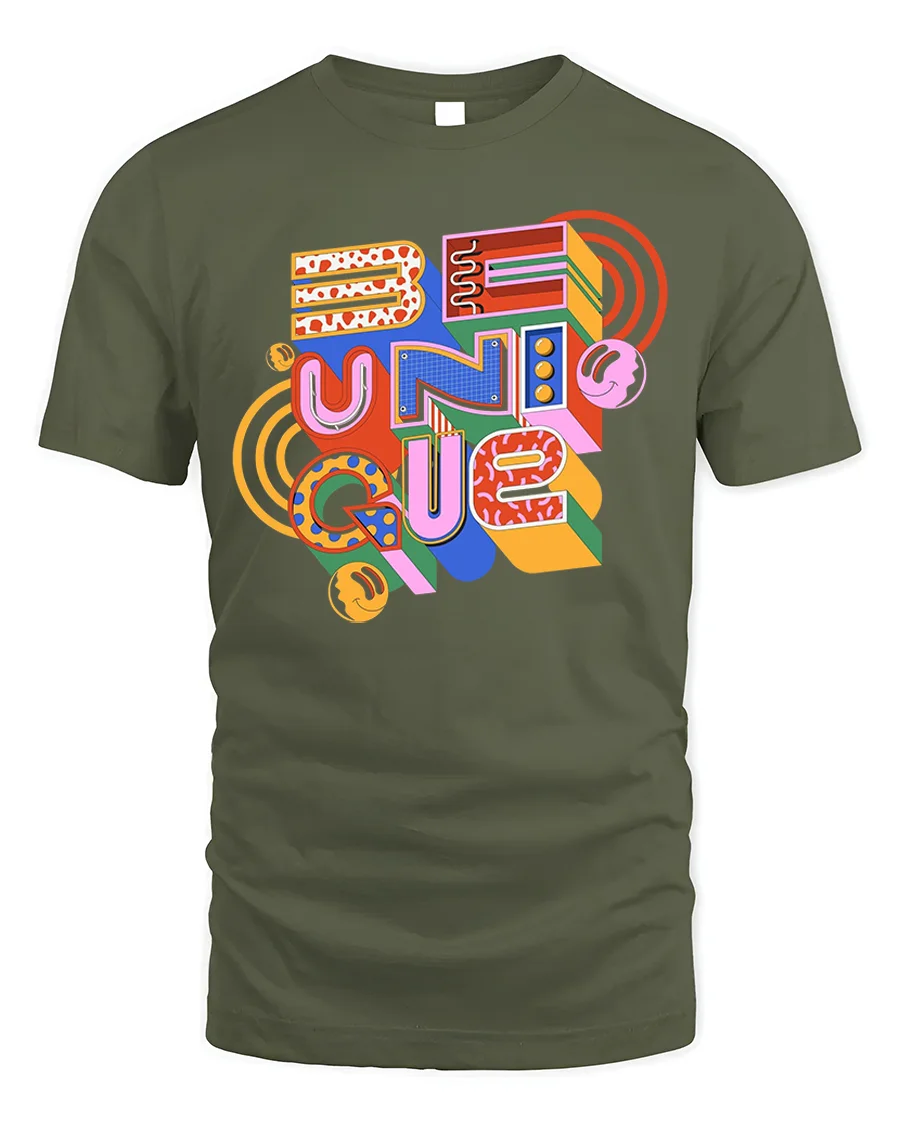 The Colorful Retro Be Unique Typography Art T-Shirt is a vibrant celebration of individuality and creative style. Featuring bold, 3D letters and a mix of playful shapes and colors, this design captures the essence of retro pop art with a modern twist. Its fun typography and layered geometric details make it an instant attention-grabber for those who love to express their unique personality through fashion.