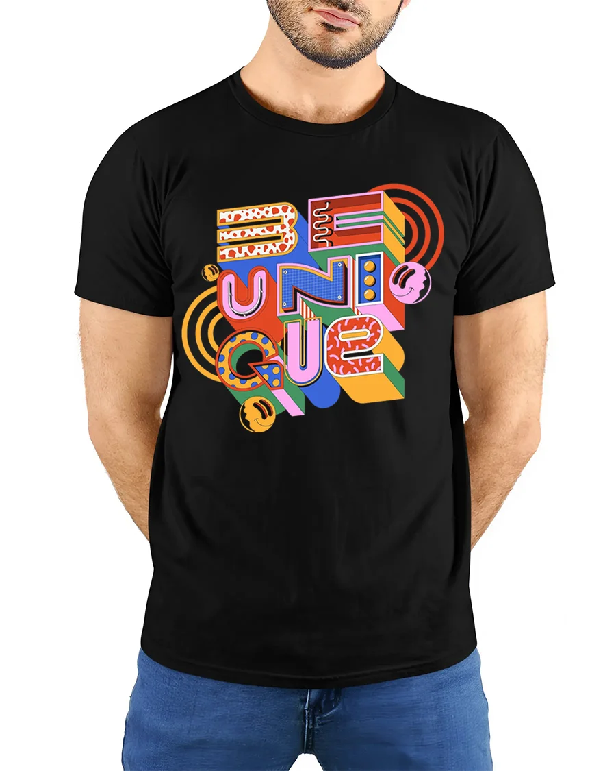 Stand out with confidence in the Colorful Retro Be Unique Typography Art T-Shirt—a perfect choice for casual outings, art events, or gifting to someone special. Pair it with jeans, shorts, or a jacket for a stylish look that radiates positivity and originality. This tee isn’t just fashion—it’s a reminder to stay bold, be yourself, and embrace what makes you different.