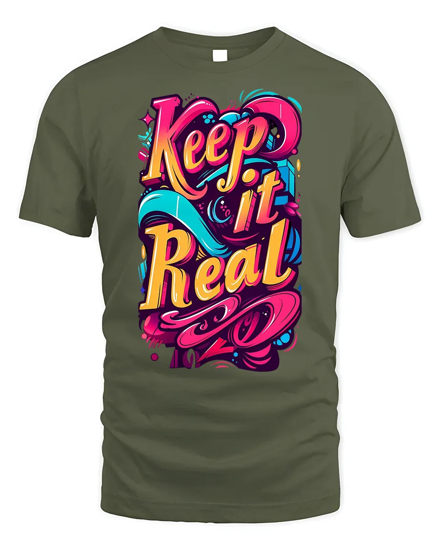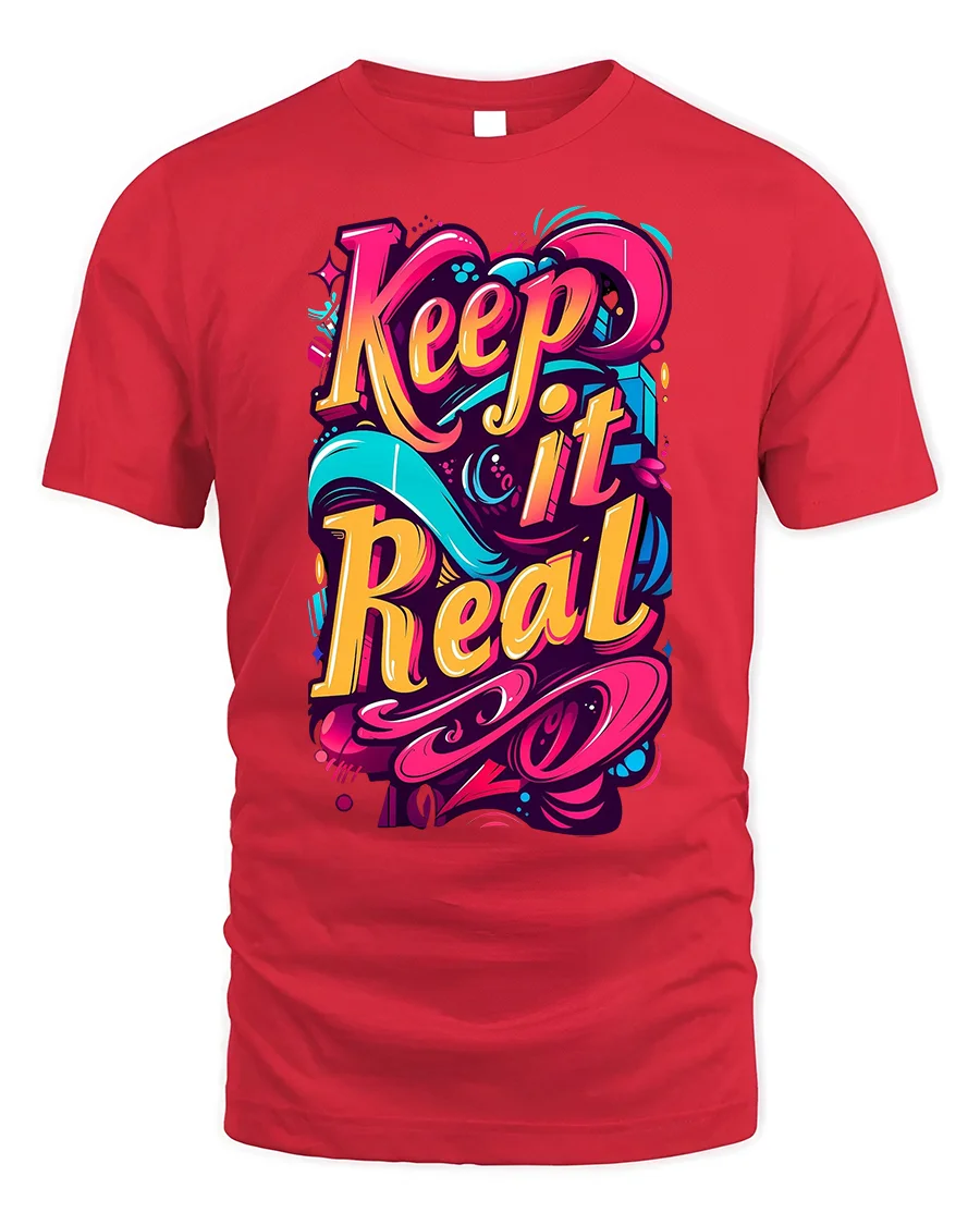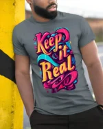 Bring attitude and authenticity to your outfit with this Colorful Retro Keep It Real Typography T-Shirt, designed for those who live life with confidence and originality.