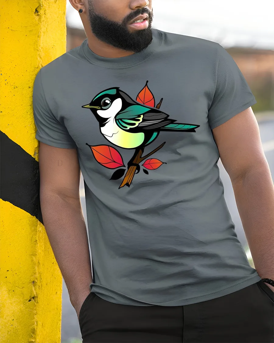 Colorful Songbird Branch Art Graphic Tee Cute Nature Tshirt brings a fresh and vibrant look inspired by nature.