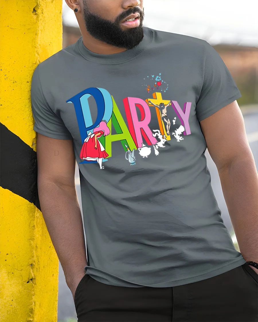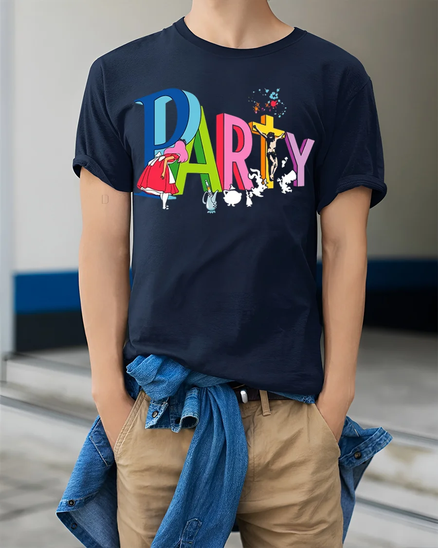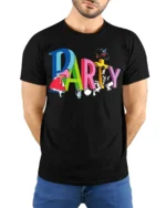 The Colorful Wonderland Party Vibe Graphic T-Shirt brings a playful, eye-catching twist to your wardrobe. Designed with bold, multicolored letters spelling “PARTY” and whimsical characters dancing around, this shirt captures the energy and excitement of celebration. The bright, vivid tones and creative artwork make it an instant favorite for those who love to express their fun personality through fashion.