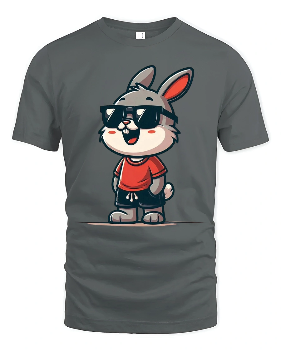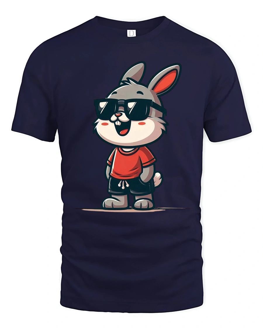 Cool Bunny Graphic Tee Funny Cute Animal Style Tshirt features an adorable cartoon rabbit character with playful personality and modern casual style. The charming illustration showcases a confident bunny wearing stylish sunglasses, creating a cheerful and expressive design that instantly attracts attention. This creative artwork blends humor with cute character appeal, making the graphic visually engaging and enjoyable.