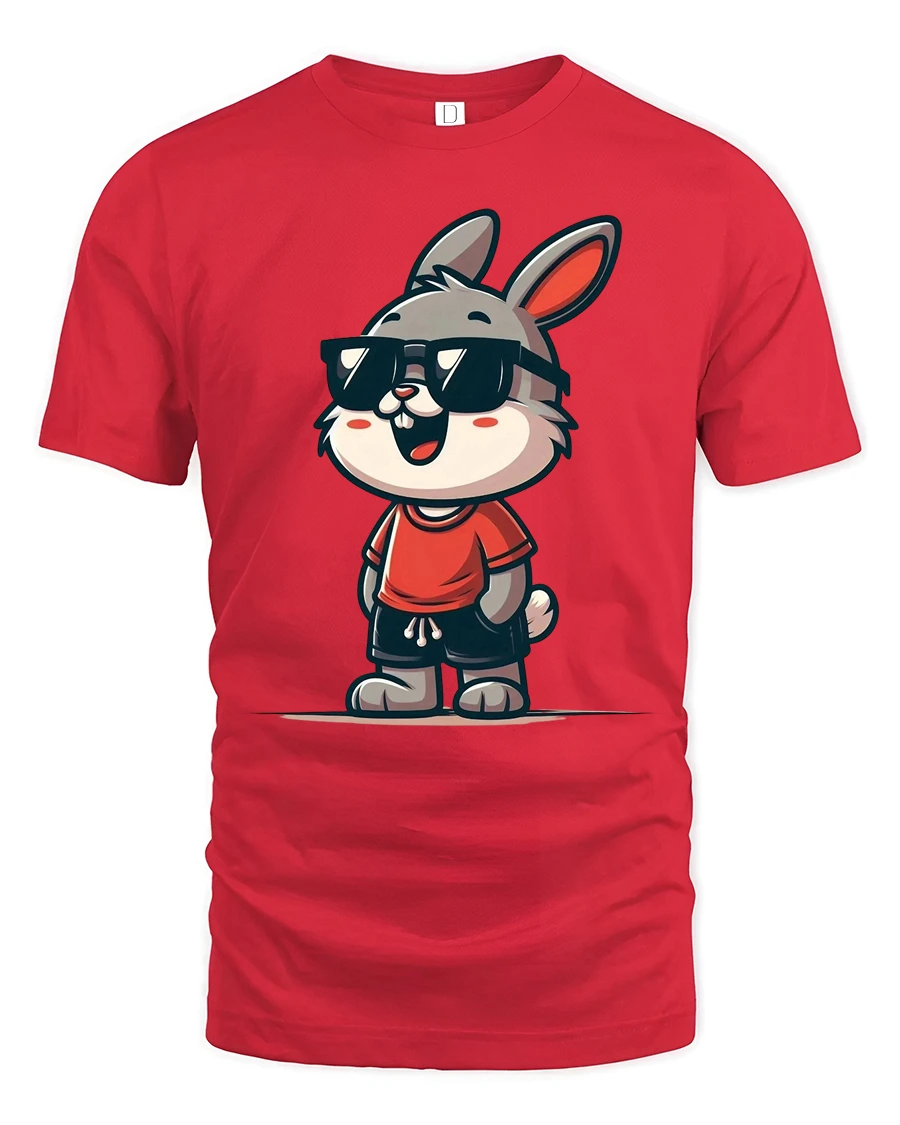 The cool bunny graphic tee highlights a balanced combination of friendly cartoon aesthetics and contemporary fashion inspiration. The artistic character design communicates confidence, positivity, and relaxed lifestyle energy through a clean and vibrant visual concept. The playful bunny illustration adds personality and charm while maintaining a versatile appearance suitable for everyday casual wear.