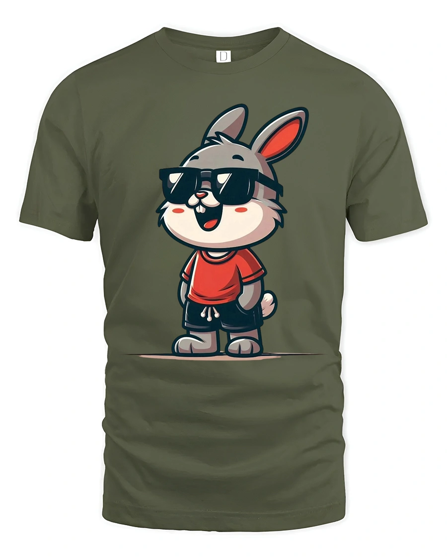 Cool Bunny Graphic Tee Funny Cute Animal Style Tshirt - military green t-shirt on white background