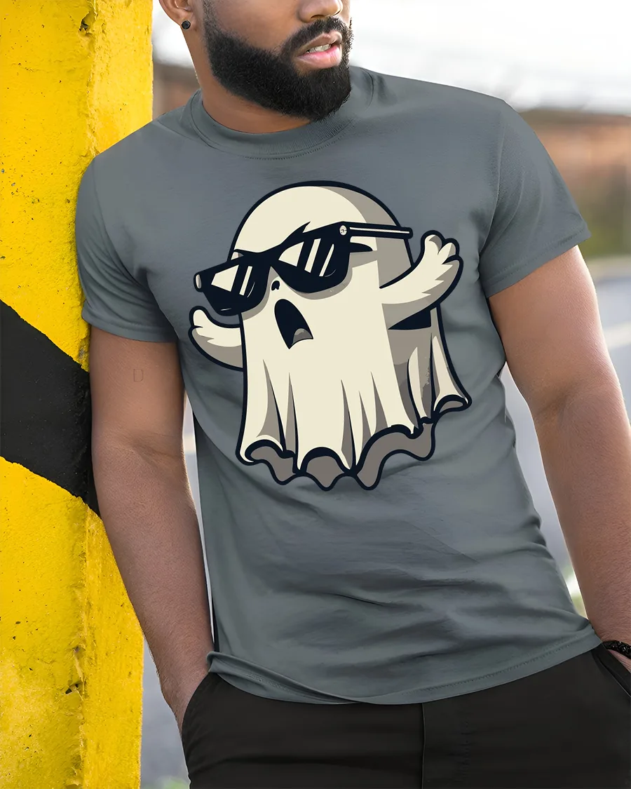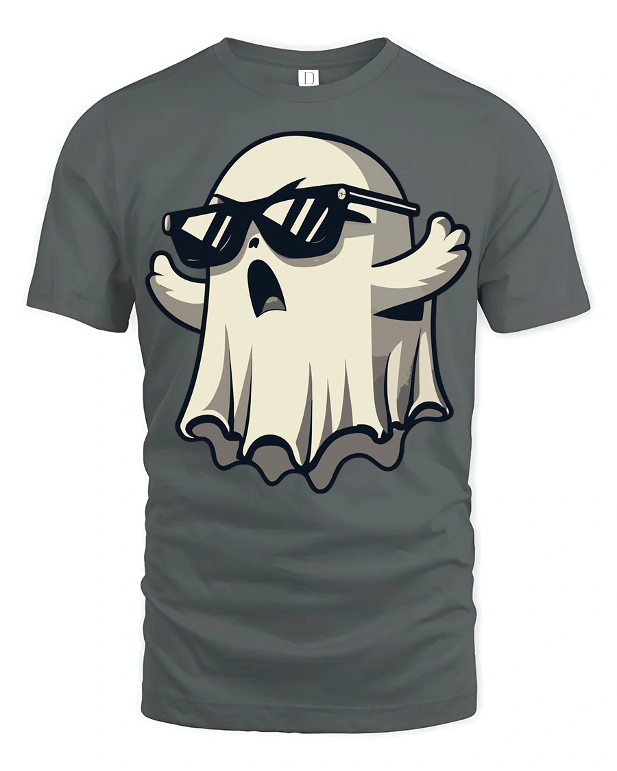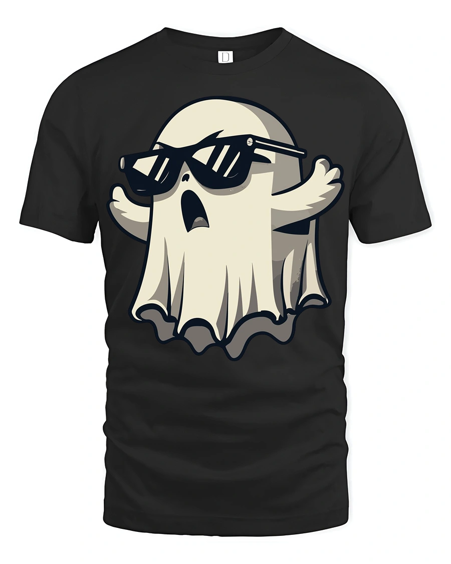 This funny ghost graphic tee blends Halloween spirit with casual humor and a cool attitude. The cheerful ghost illustration creates a fun contrast between spooky and playful themes, making the design feel friendly and entertaining. The bold sunglasses add a touch of personality that makes the character look confident and carefree.