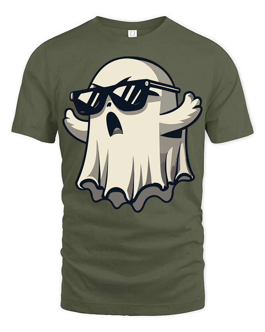 Cool Ghost With Sunglasses Funny Halloween Graphic T Shirt - military green t-shirt on white background