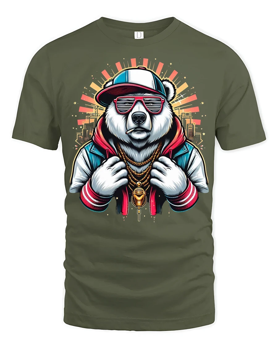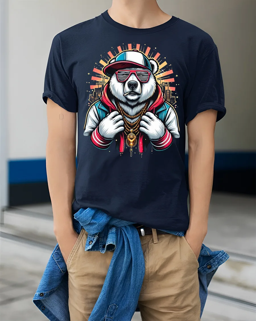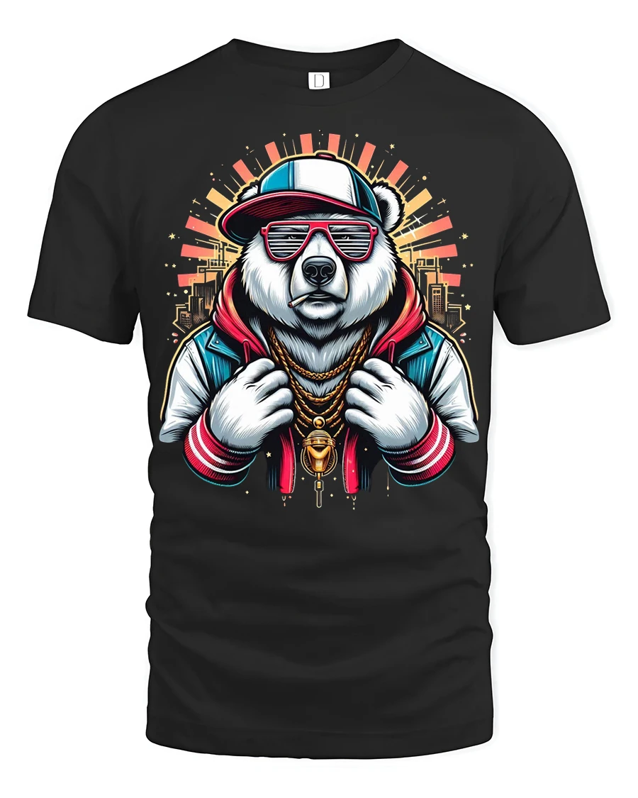 The design features a confident panda rocking sunglasses chains and a cap, capturing the essence of hip hop attitude with a playful twist.