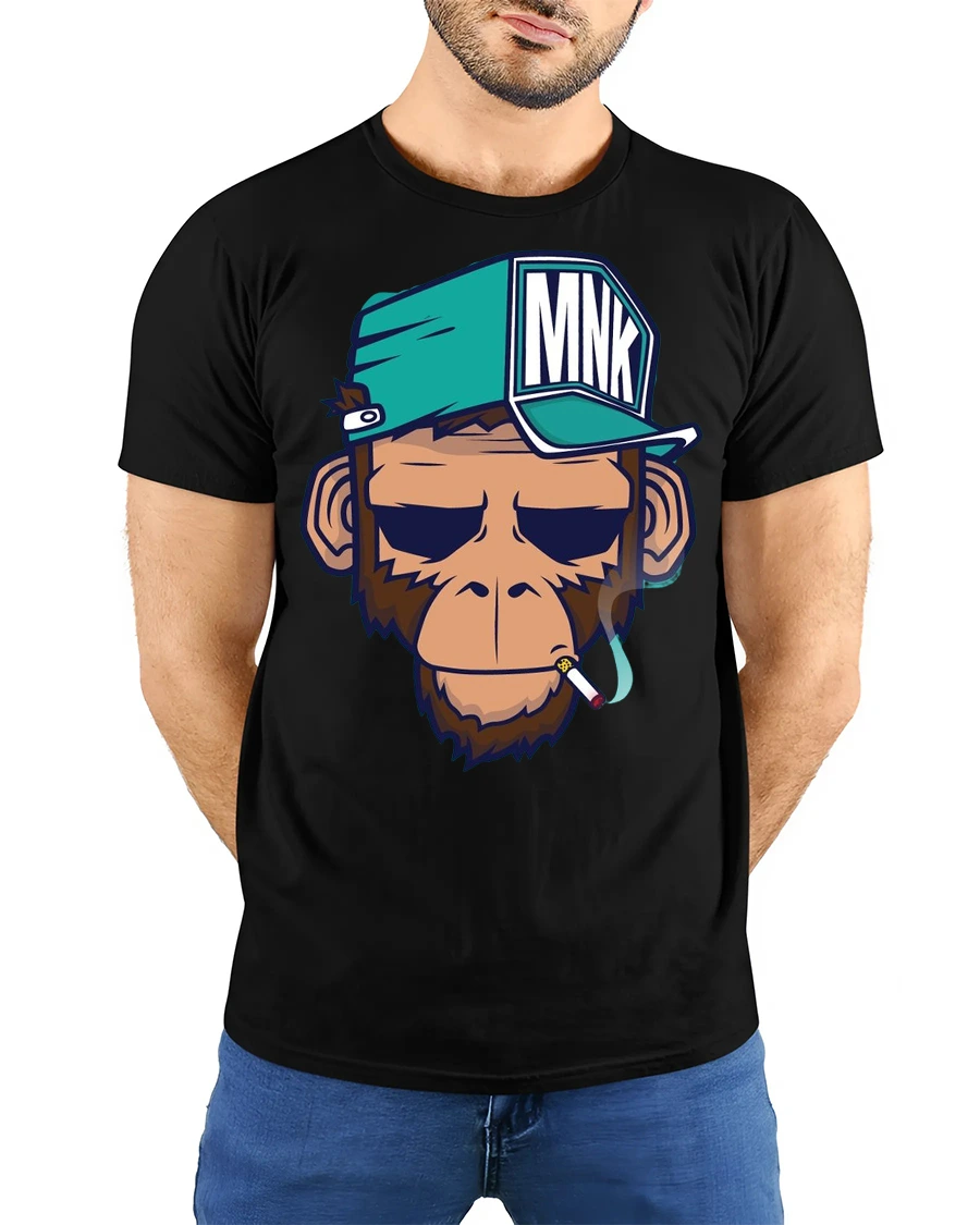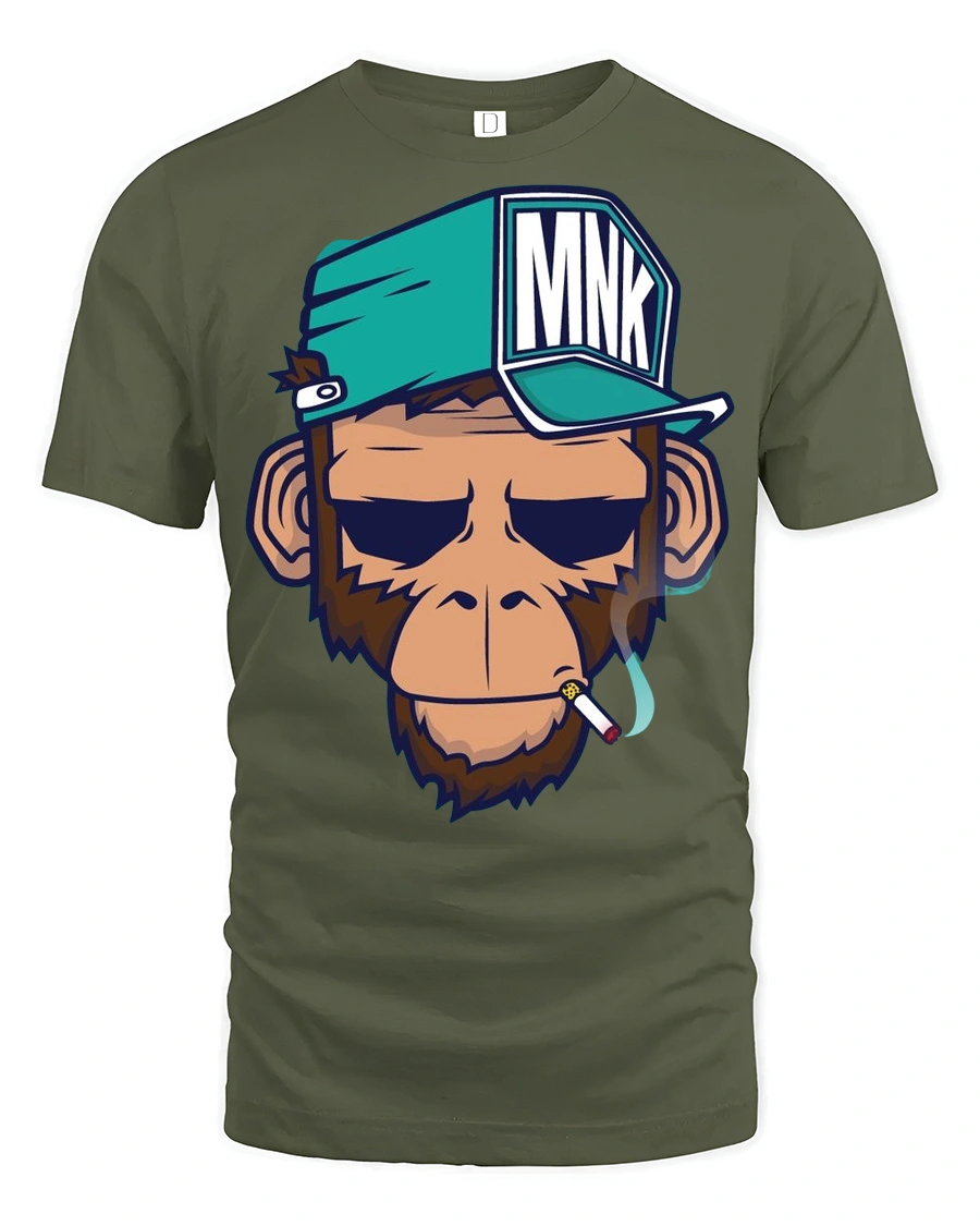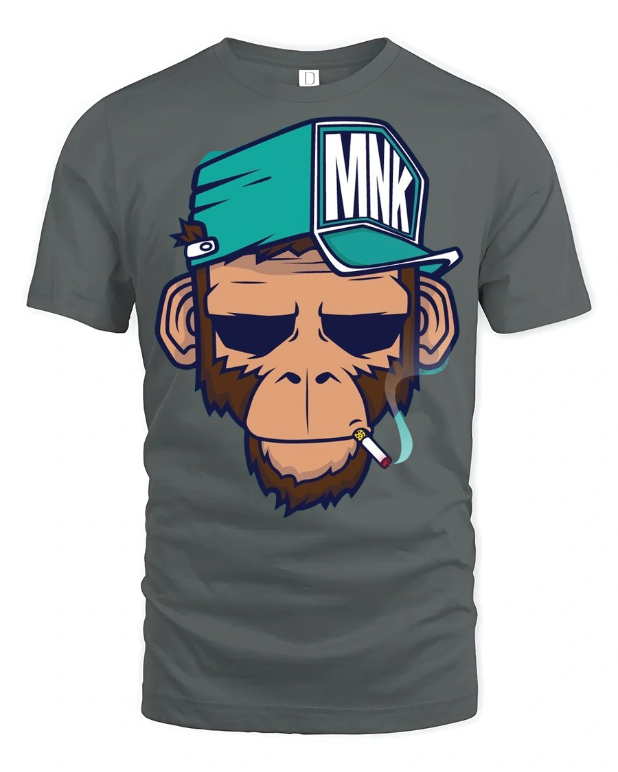 Featuring a laid back monkey character with a cap and a confident attitude, this design captures a cool and rebellious mood.