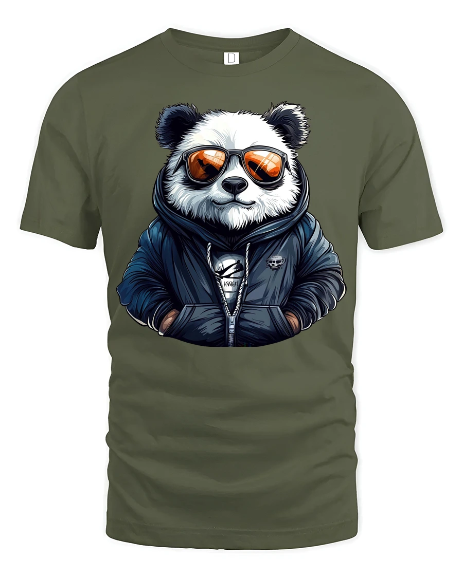 Cool Panda Sunglasses Streetwear Graphic T Shirt Stylish Tee - military green t-shirt on white background