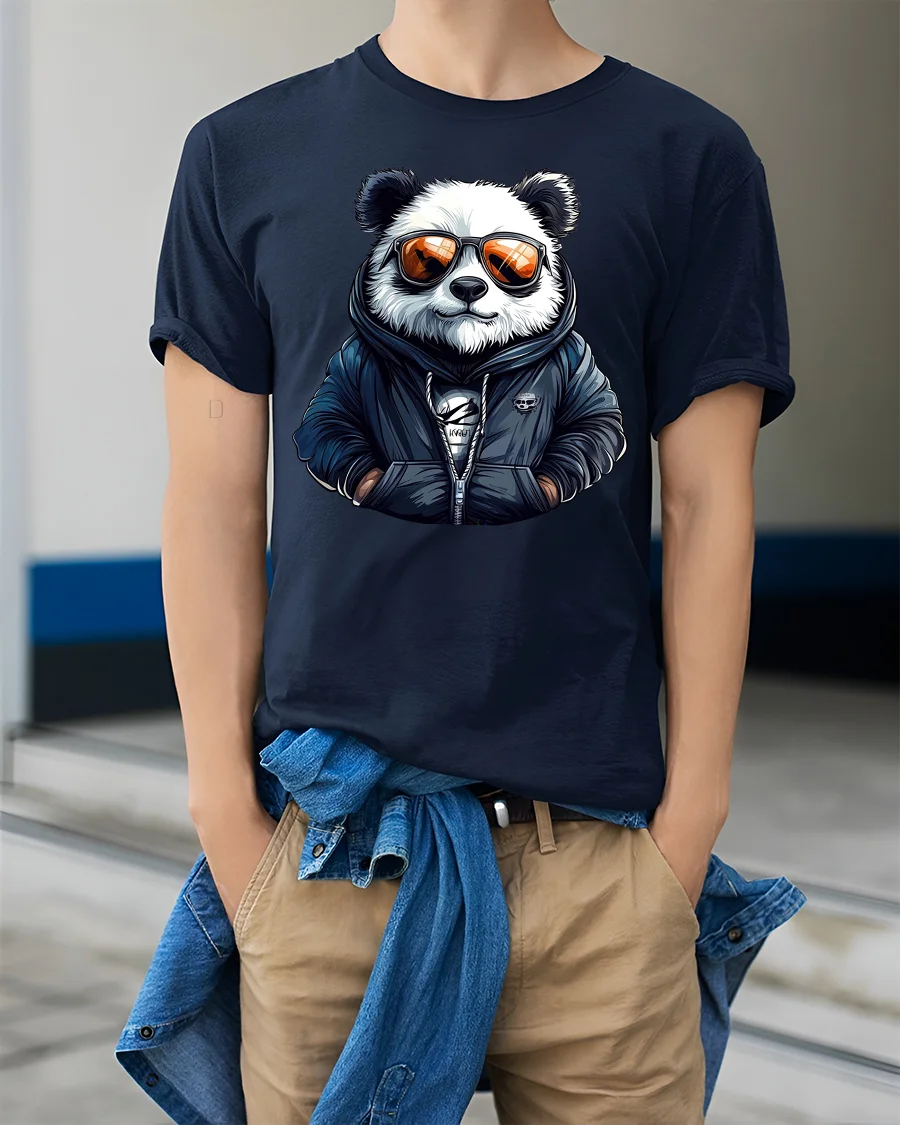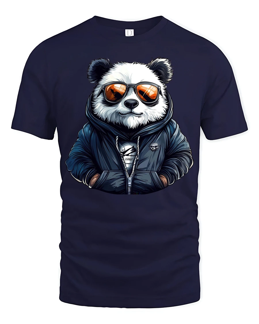 Featuring a stylish panda wearing sunglasses and a hoodie, this graphic captures urban fashion energy with a playful twist.
