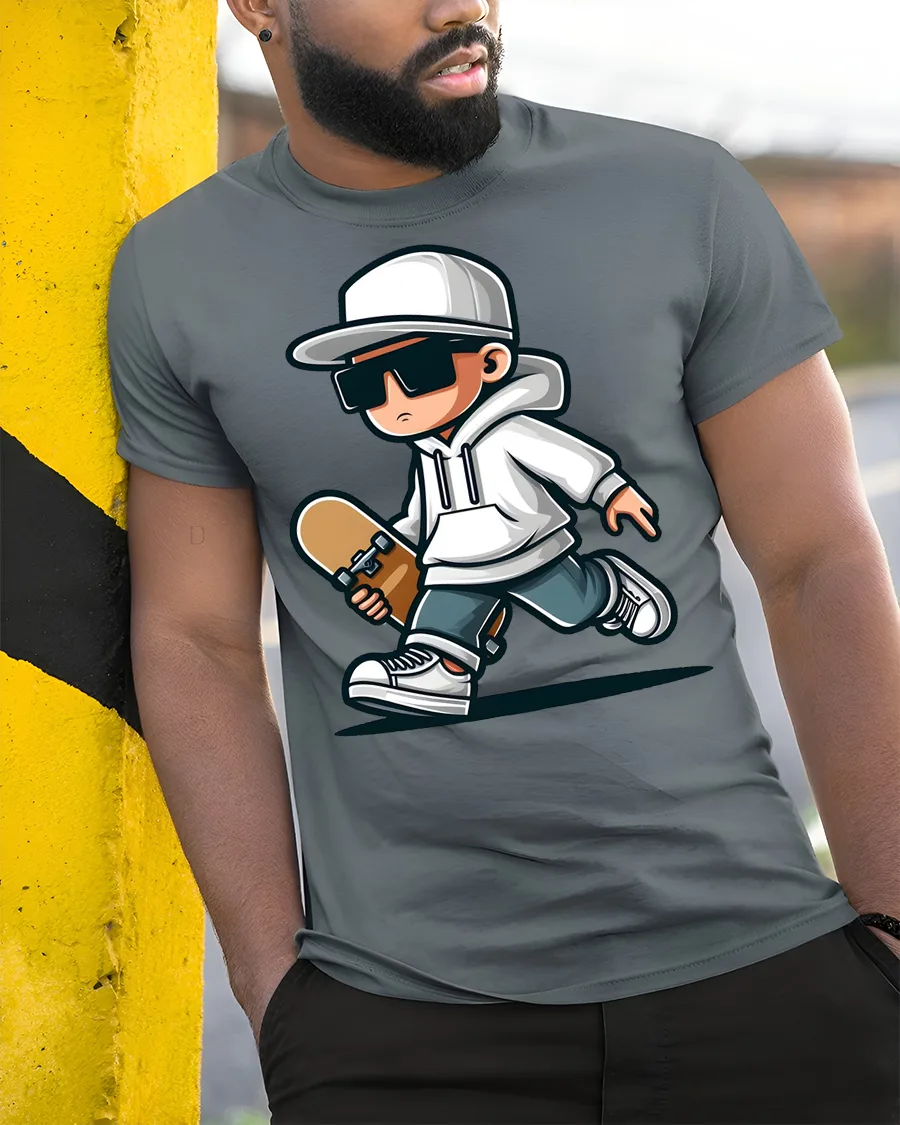The confident skater character holding a skateboard reflects creativity, independence, and passion for urban street style.