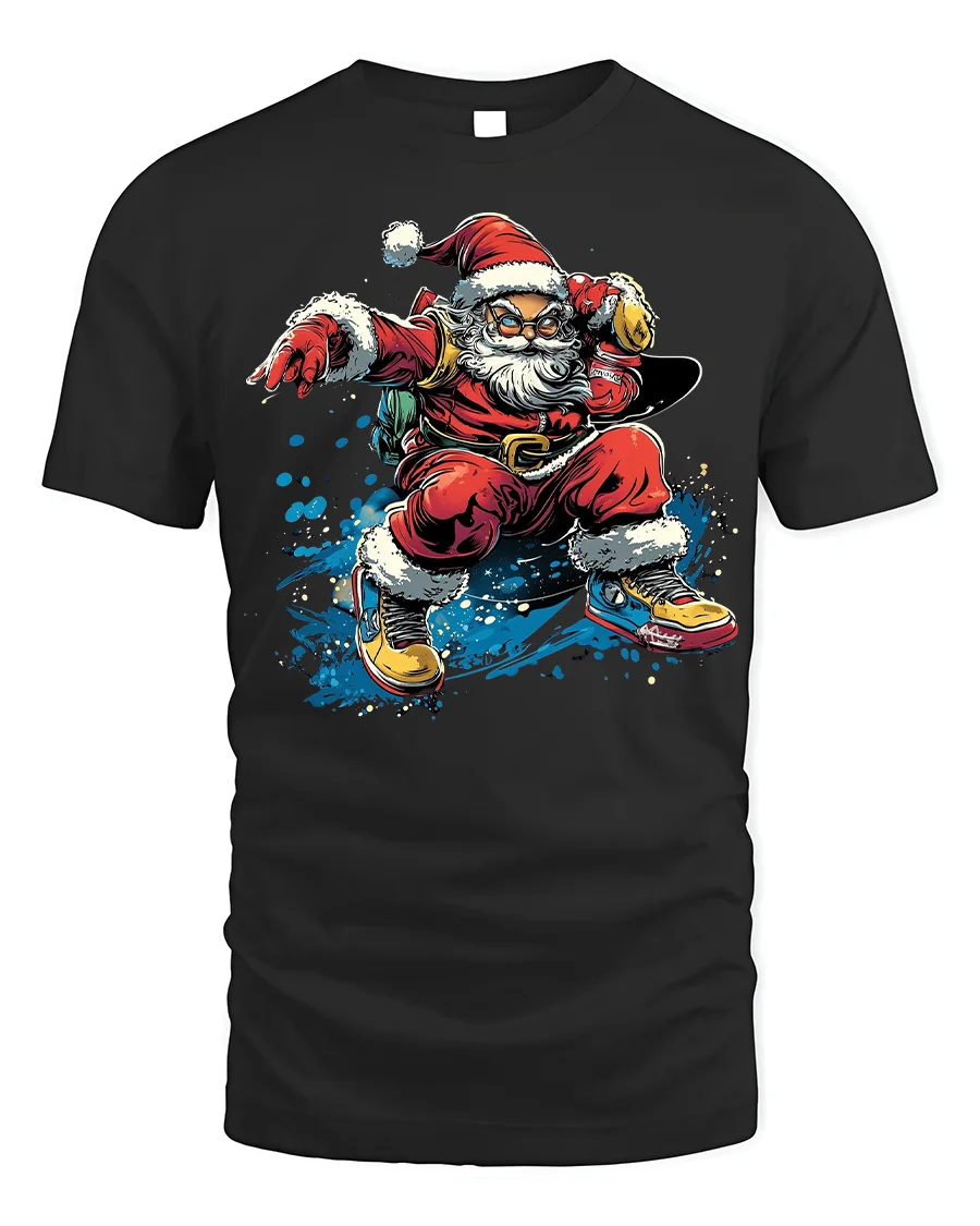 Celebrate the holiday season with a modern twist in this Cool Skateboarding Santa Christmas T-Shirt, designed to bring festive cheer with a splash of street style. Featuring Santa Claus in full red attire, riding a skateboard with bold energy and attitude, this design adds a fun and youthful edge to traditional Christmas fashion. Perfect for anyone who loves combining holiday spirit with cool urban vibes, this shirt is a must-have for December celebrations.