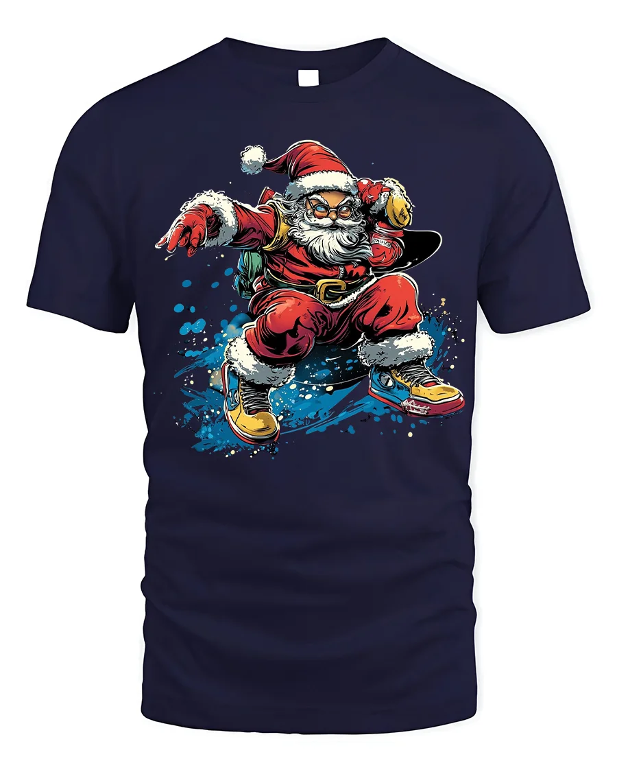 This festive t-shirt also makes a fantastic Christmas gift idea for friends, family, or anyone who enjoys unique and playful holiday apparel. Whether you’re unwrapping gifts, attending a party, or just spreading cheer throughout the season, this Christmas t-shirt ensures you’ll stand out in fun and fashionable style. Add this design to your wardrobe and let Santa skate into your holidays with cool energy.