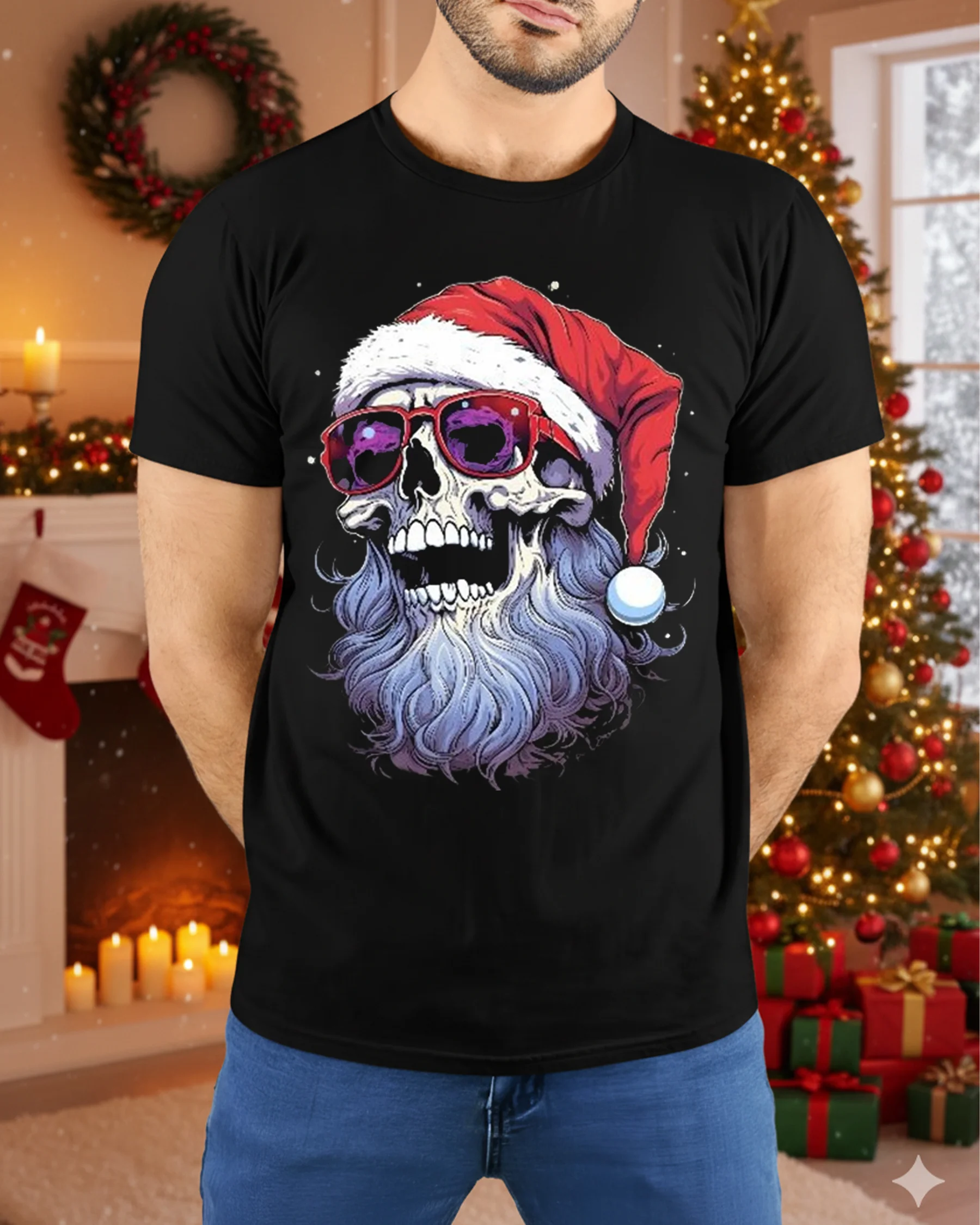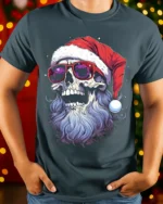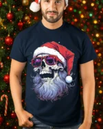 Show off your edgy holiday spirit with this Cool Skull Santa T-Shirt Gothic Christmas Funny Holiday Tee. Featuring a unique design of a skull wearing a Santa hat and stylish red sunglasses, this shirt combines festive fun with a dark, rebellious twist. It’s perfect for those who like to celebrate Christmas with a bit of attitude and individuality.