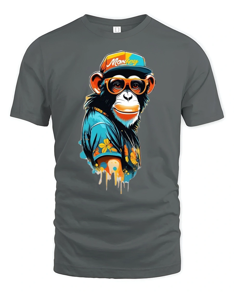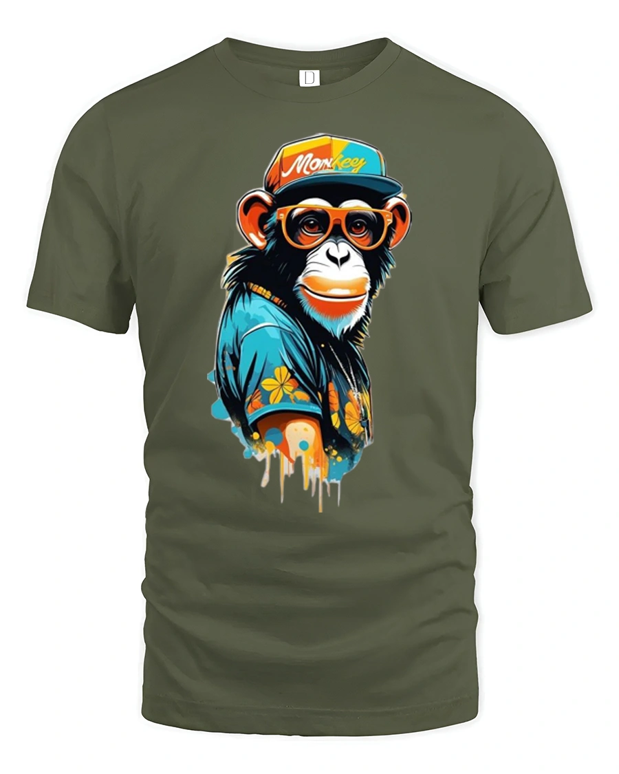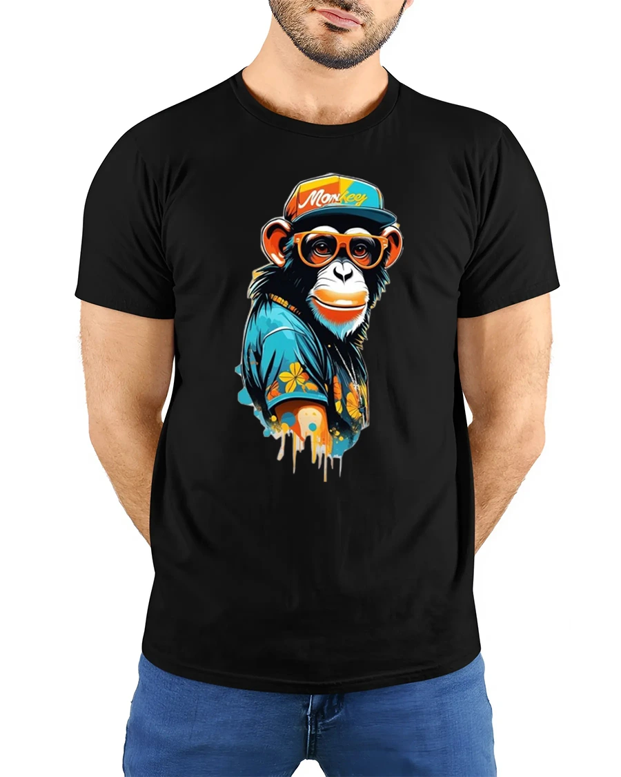 Cool Stylish Monkey With Sunglasses Street Art Graphic T Shirt features a playful urban inspired design that blends street fashion with vibrant artistic style. The graphic shows a trendy monkey wearing sunglasses, a colorful cap, and a stylish outfit that brings a fun hipster personality to the artwork. The bold colors and dripping paint style details create a modern street art vibe that stands out with creative energy and attitude.