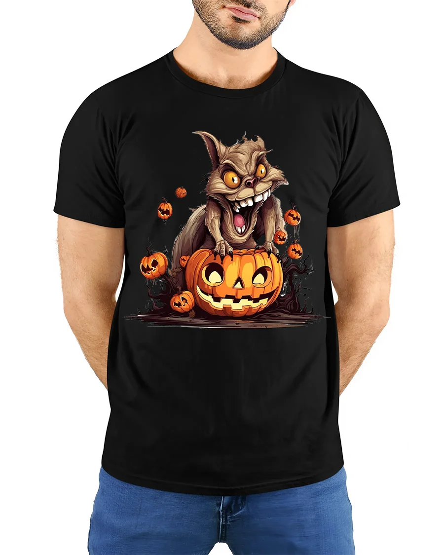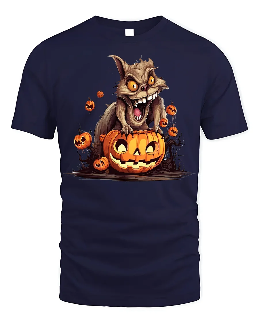 Perfect for haunted houses, trick-or-treating, or casual fall wear, this Halloween graphic tshirt brings unique personality to your autumn wardrobe. The vivid pumpkin glow and terrifying squirrel design pop against the dark background, making it ideal for parties, festivals, or simply grabbing attention wherever you go. It’s a great choice for anyone who loves mixing humor with horror in their Halloween style.