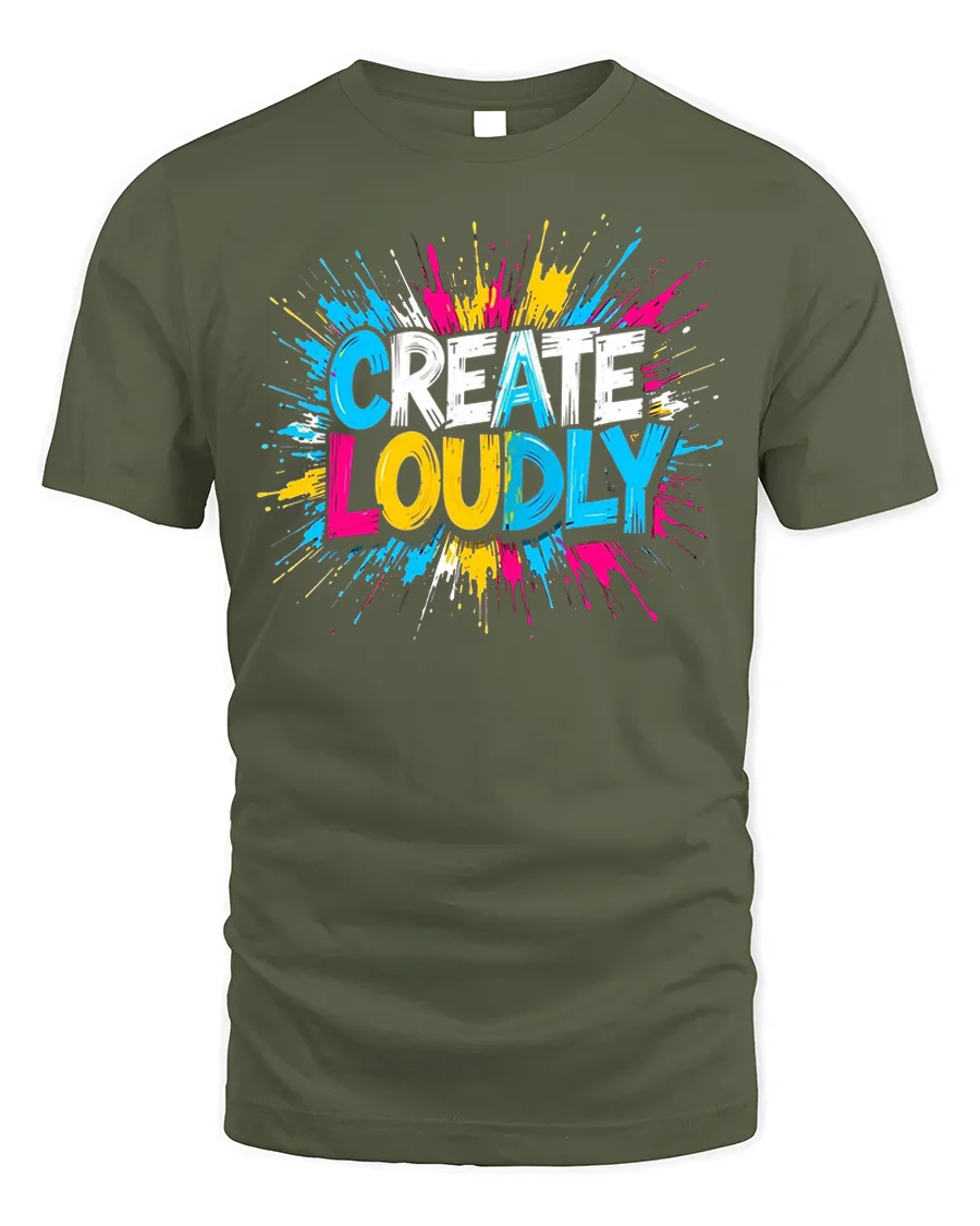 This tee also makes a fantastic gift for creative friends, art students, or anyone who believes in making their mark boldly. Step into the spotlight, wear your creativity with pride, and inspire the world with the Create Loudly Colorful Paint Splash T-Shirt.