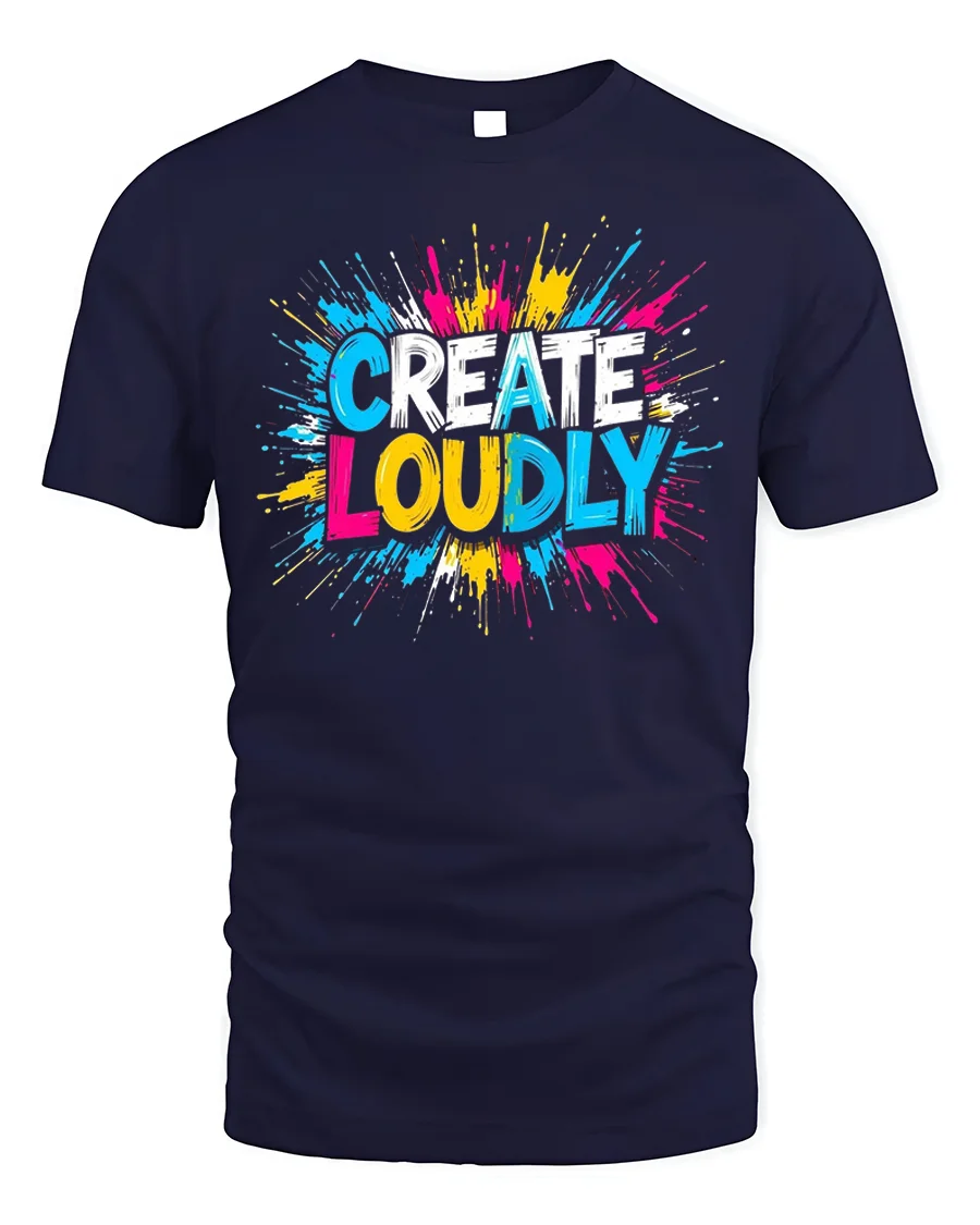 Express your passion and energy with the Create Loudly Colorful Paint Splash T-Shirt, a bold and vibrant design made for creators, dreamers, and doers. Featuring dynamic splashes of yellow, blue, pink, and white exploding behind powerful typography, this tee is all about unleashing your creativity with confidence.