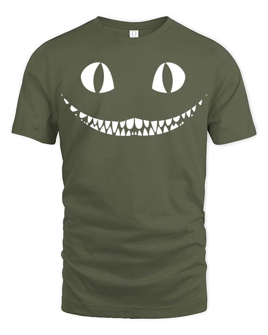 Creepy Cat Smile Halloween Spooky Graphic T Shirt - military green t-shirt on white background
