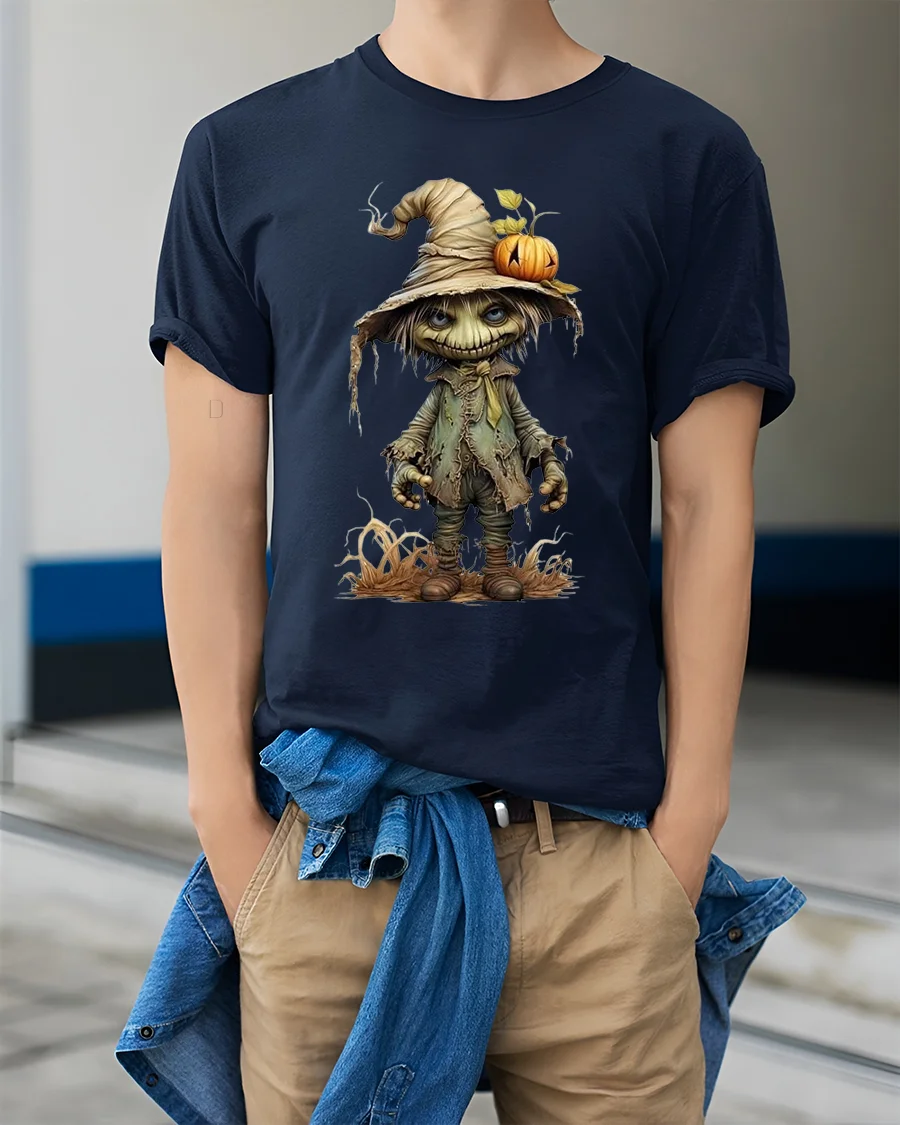 Make your October wardrobe unforgettable with the Creepy Scarecrow Pumpkin Halloween T-shirt, and embrace the haunted harvest season in style.