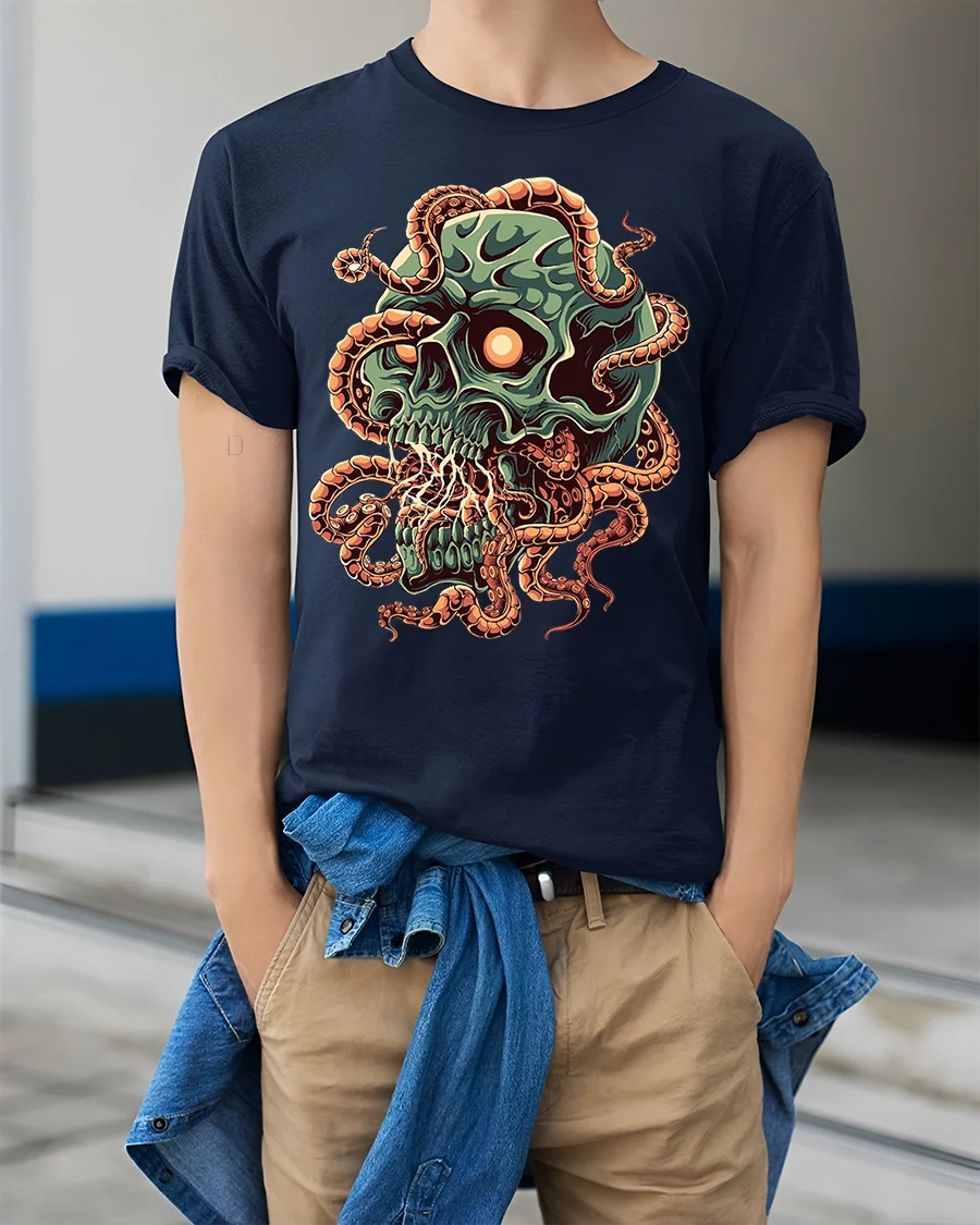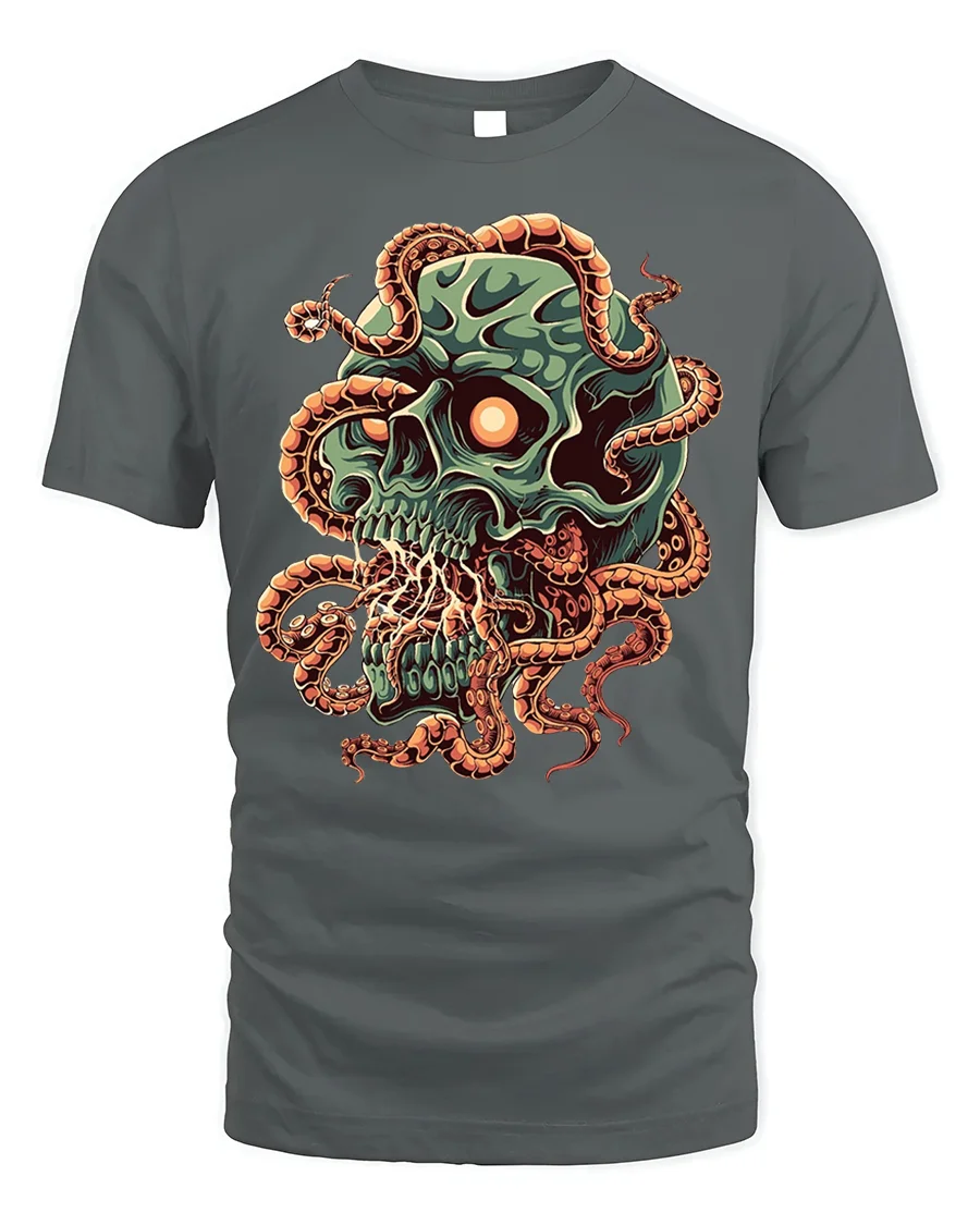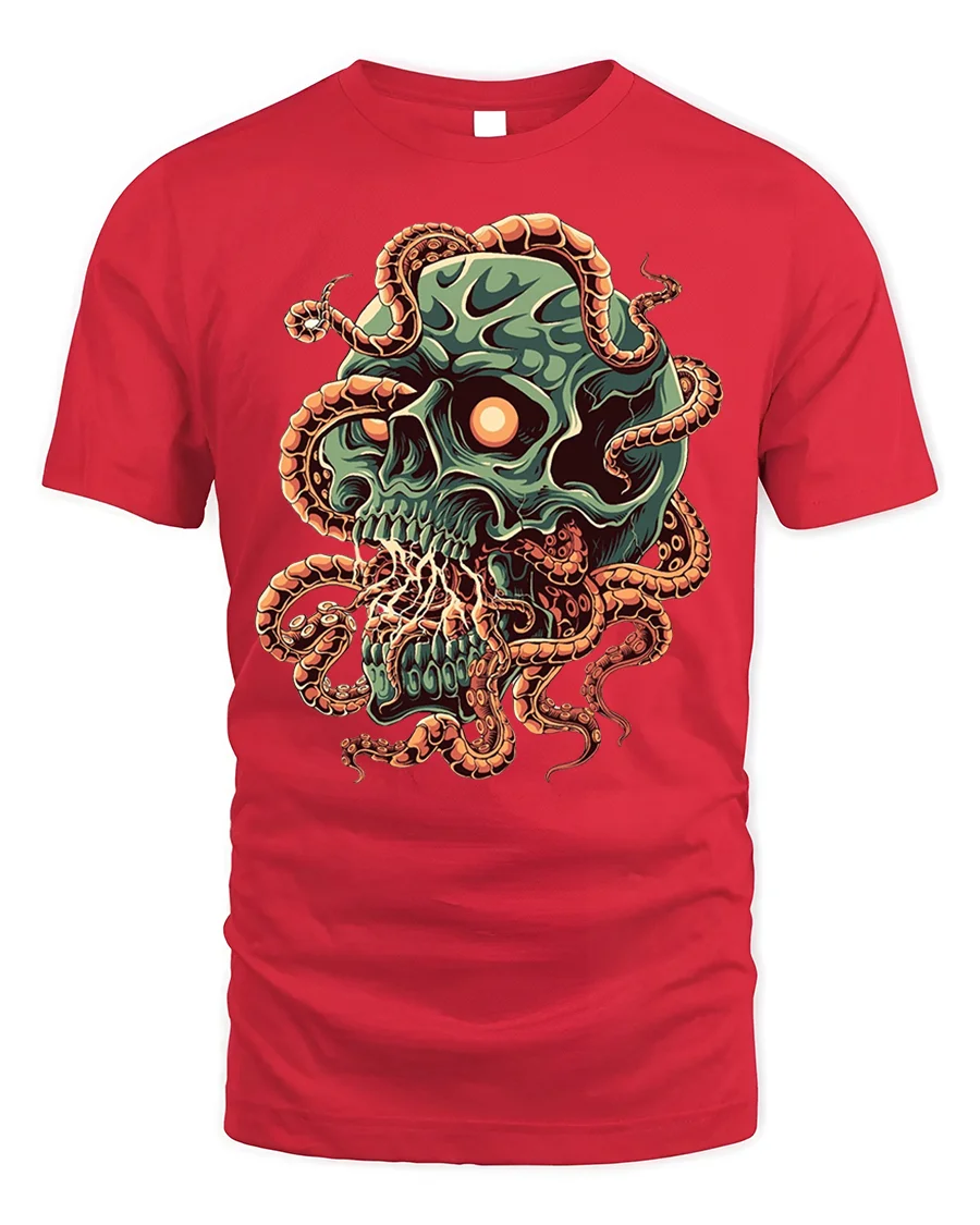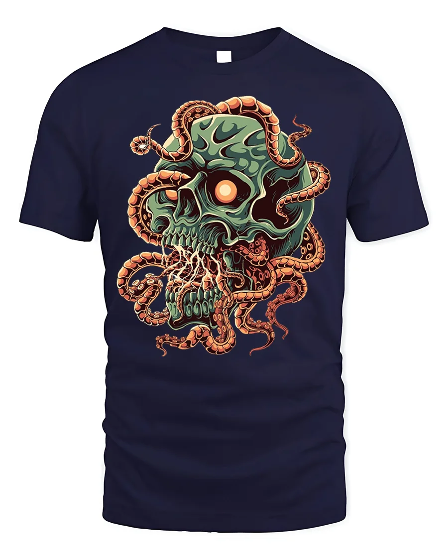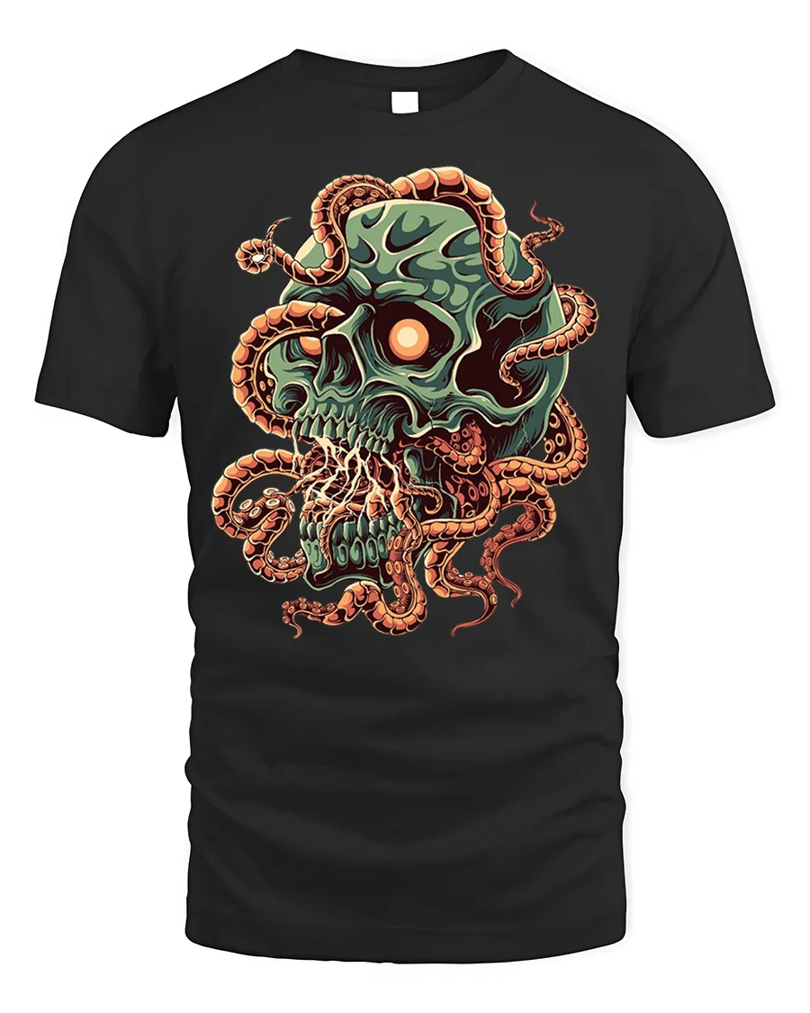 Perfect for men who appreciate gothic or alternative styles, this tshirt pairs effortlessly with jeans, leather jackets, or casual wear. It also makes a great gift for fans of skull art, creepy designs, and unique horror graphics. Step into the dark side of fashion and express your bold personality with this Creepy Skull Tentacles Horror Tshirt Graphic Style designed for standout looks and lasting comfort.