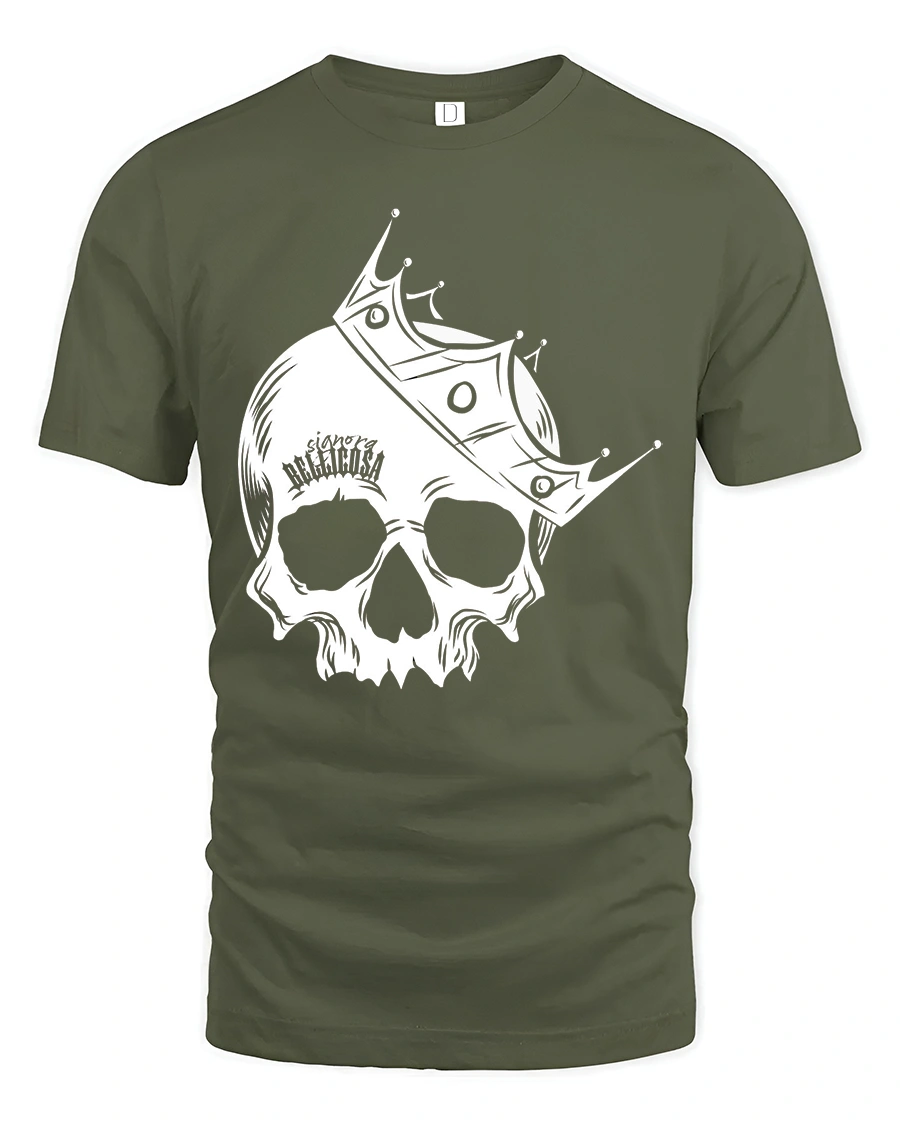 Crowned Skull Queen Graphic T Shirt Edgy Gothic Style Tee - military green t-shirt on white background