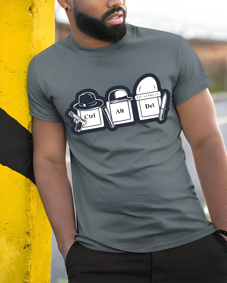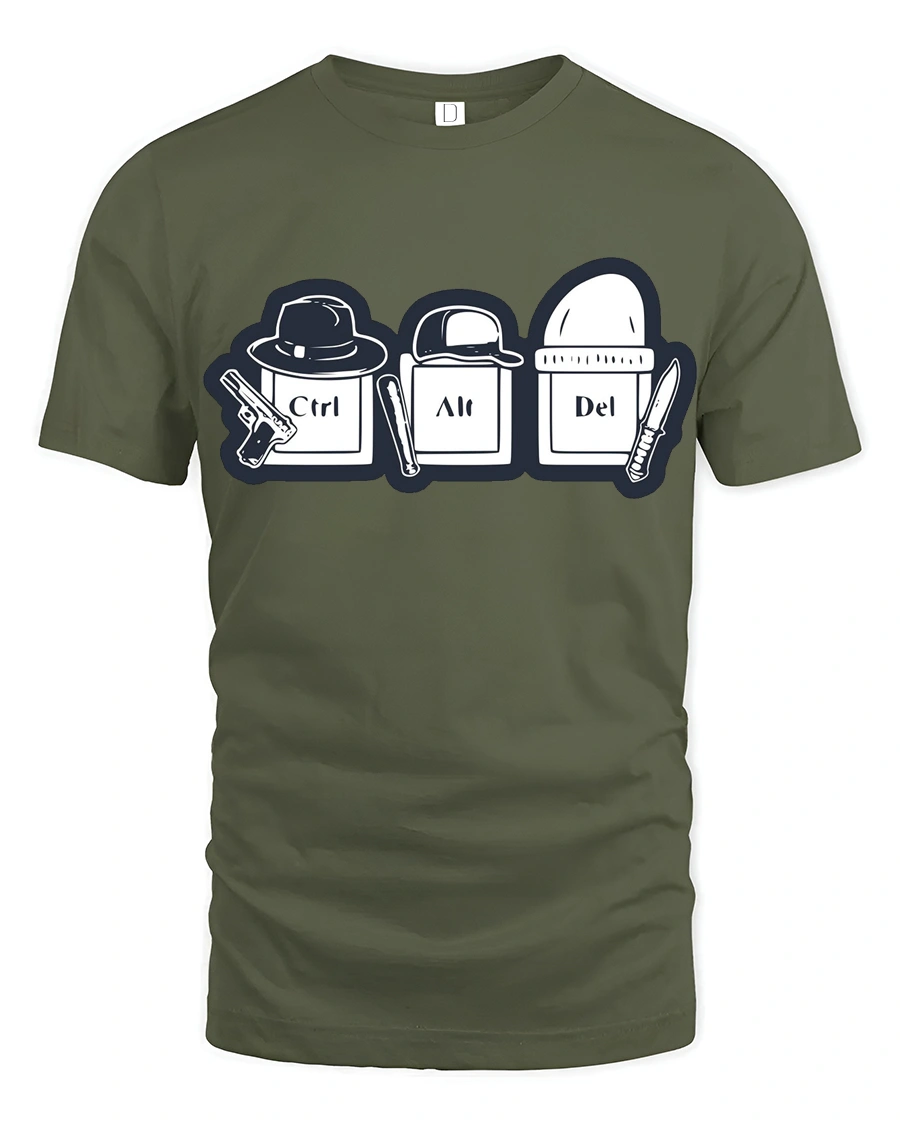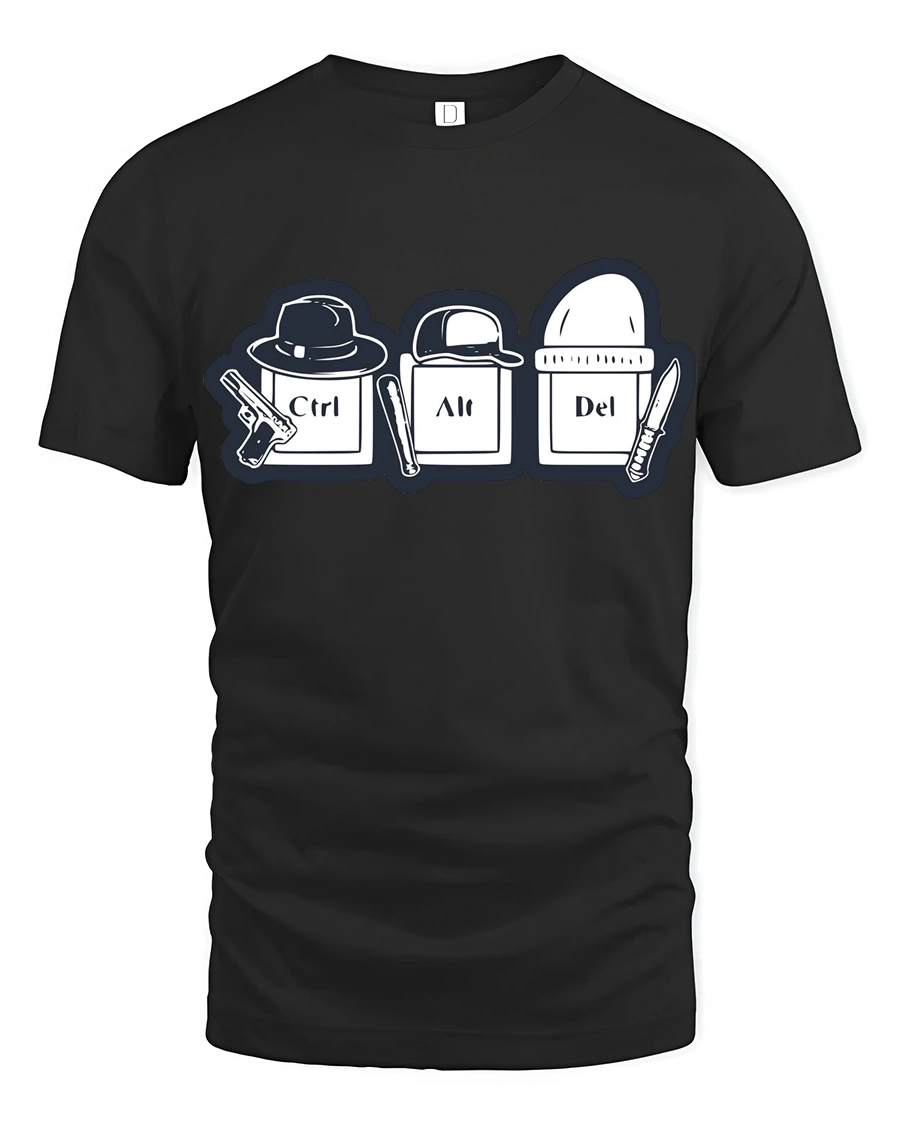 Ctrl Alt Del Funny Keyboard Crime Humor Graphic T Shirt brings a hilarious twist to one of the most famous keyboard shortcuts in tech culture.