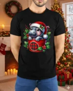 The Cute Baby Hippo in Santa Hat Christmas Holiday T-Shirt makes an ideal gift for animal lovers, kids at heart, or anyone who enjoys whimsical and festive fashion. Celebrate Christmas in the most adorable way possible with this comfy and stylish tee that brings smiles, warmth, and a little holiday magic wherever you go.