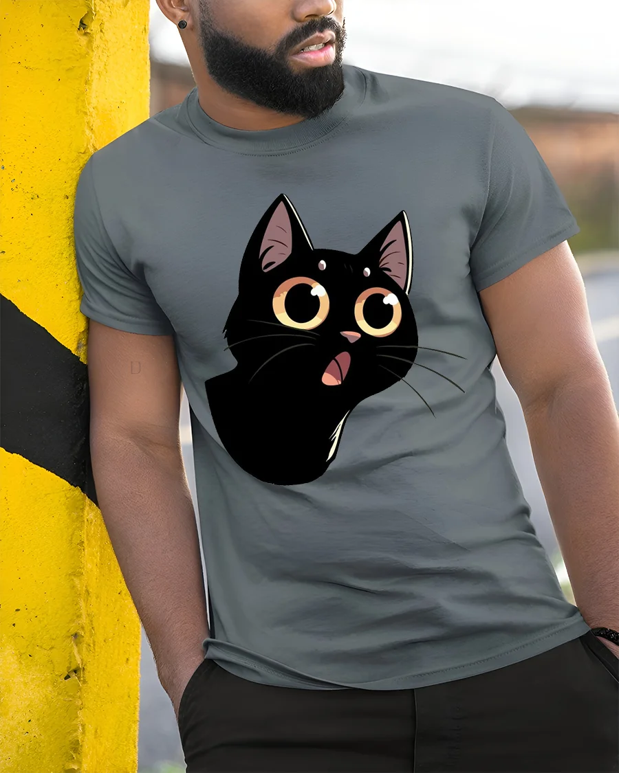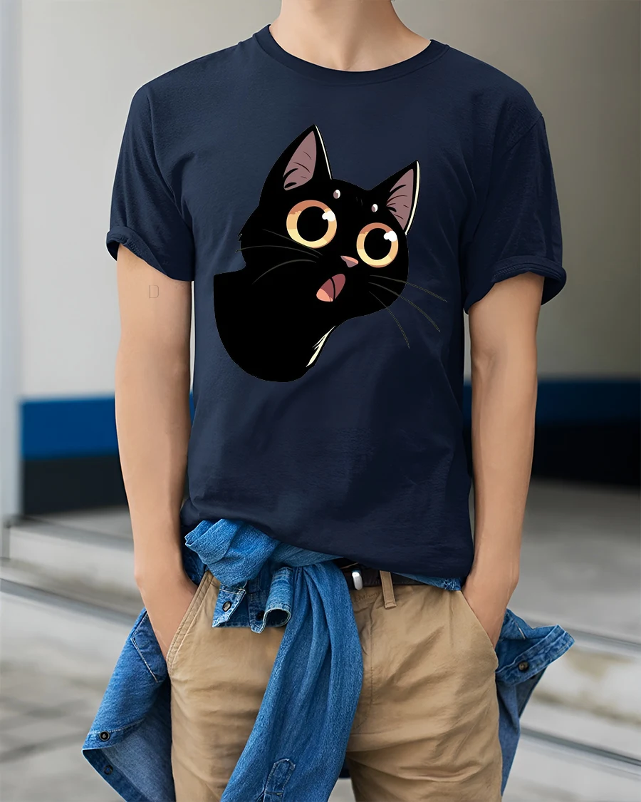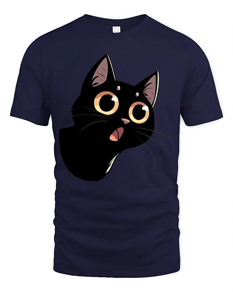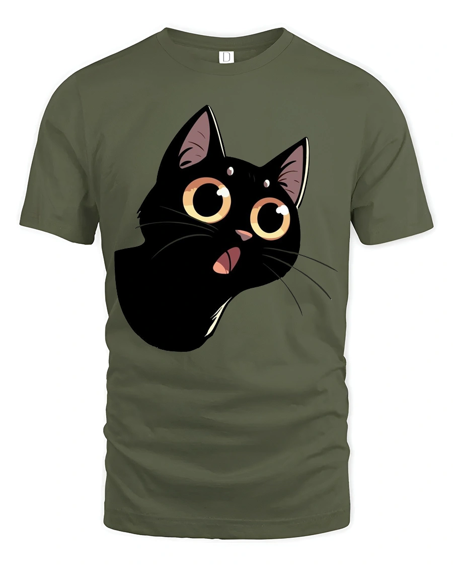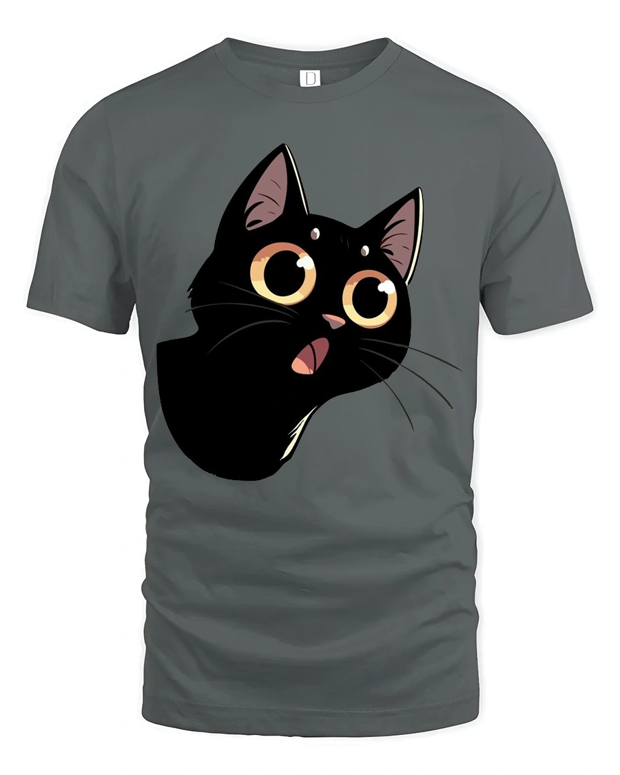 Cute Black Cat Big Eyes Graphic Tee Funny Cartoon Style features an adorable expressive kitty illustration that brings playful personality to everyday fashion.