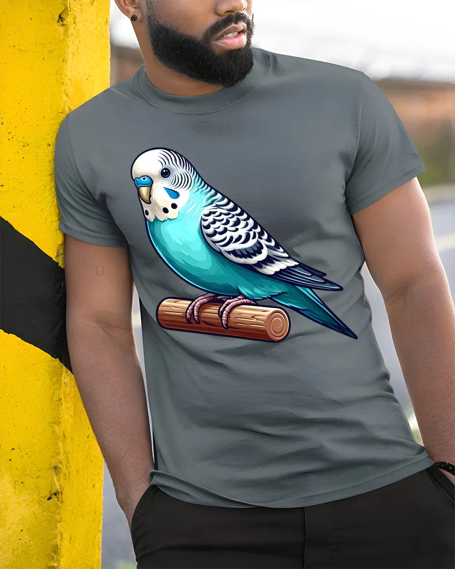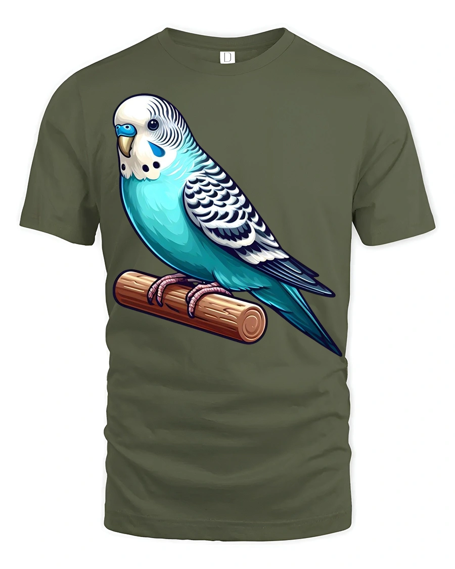 Cute Blue Parakeet Bird Perched Graphic T Shirt Pet Lover Animal Tee features a vibrant and charming design inspired by the beauty of pet birds.