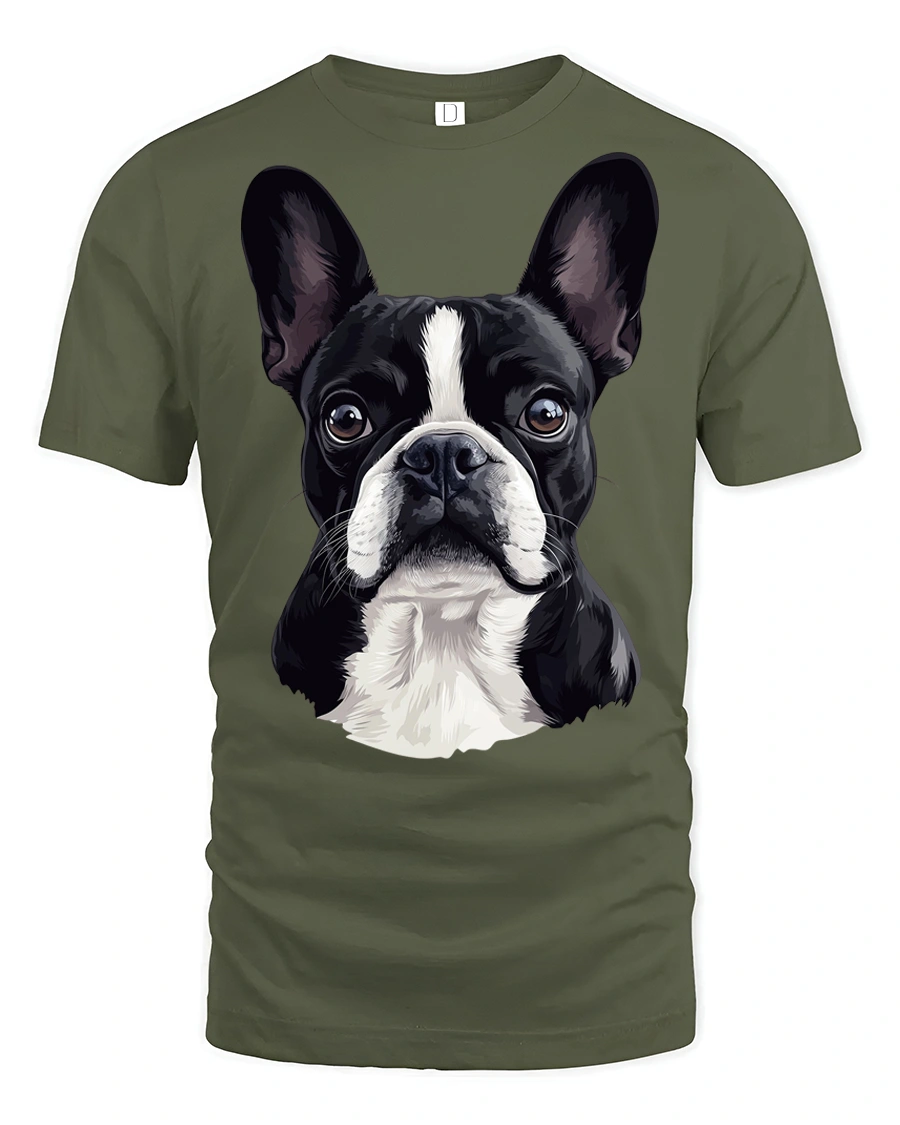 Cute Boston Terrier Dog Lover Portrait Graphic T Shirt Style - military green t-shirt on white background
