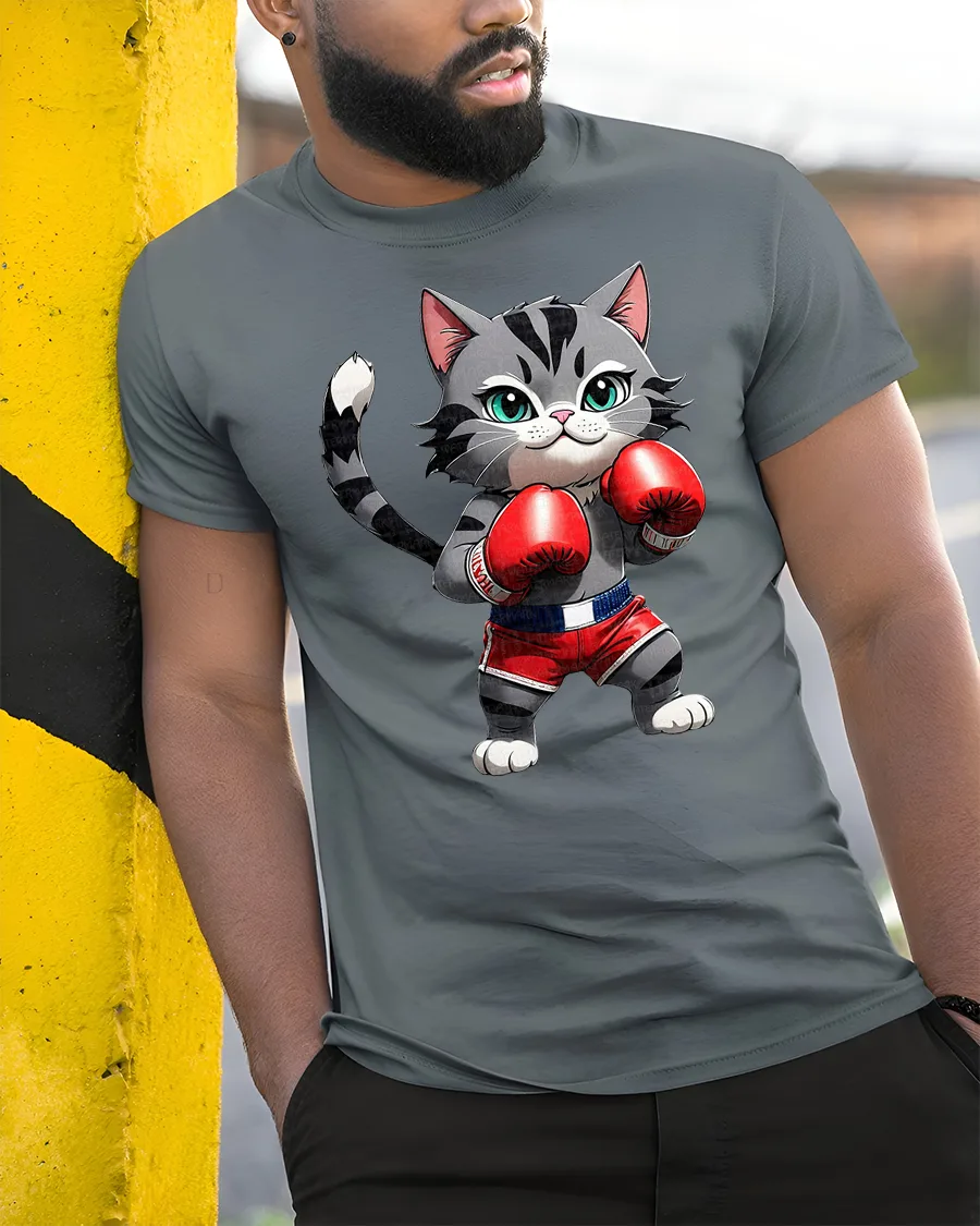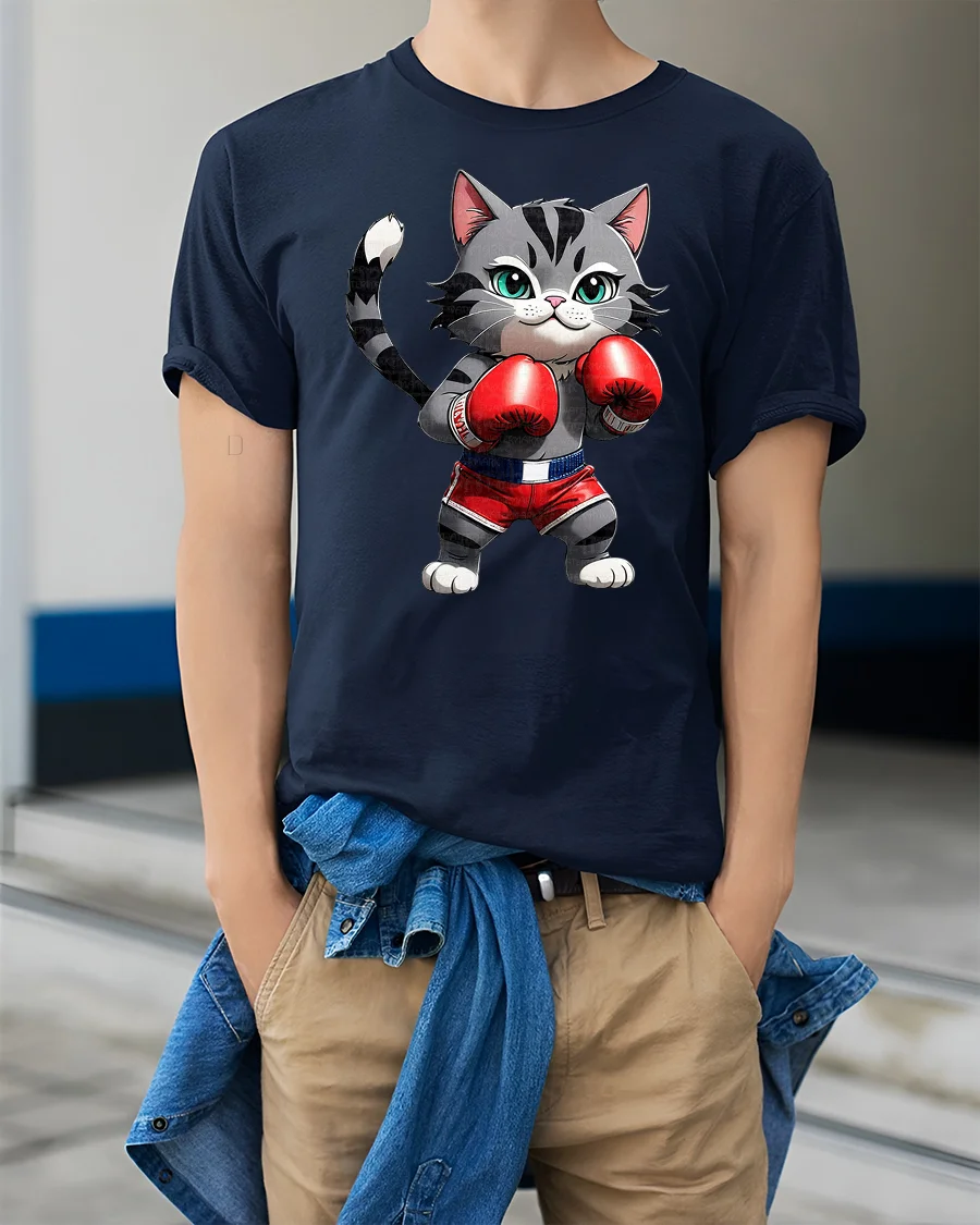 Perfect for expressing appreciation of cute animal art and humorous sport inspired graphics, this graphic tee adds originality and joyful personality to everyday outfits. The boxing cat concept creates a fun visual statement that feels expressive, stylish, and memorable while bringing cheerful creative energy to modern casual wardrobe selections.