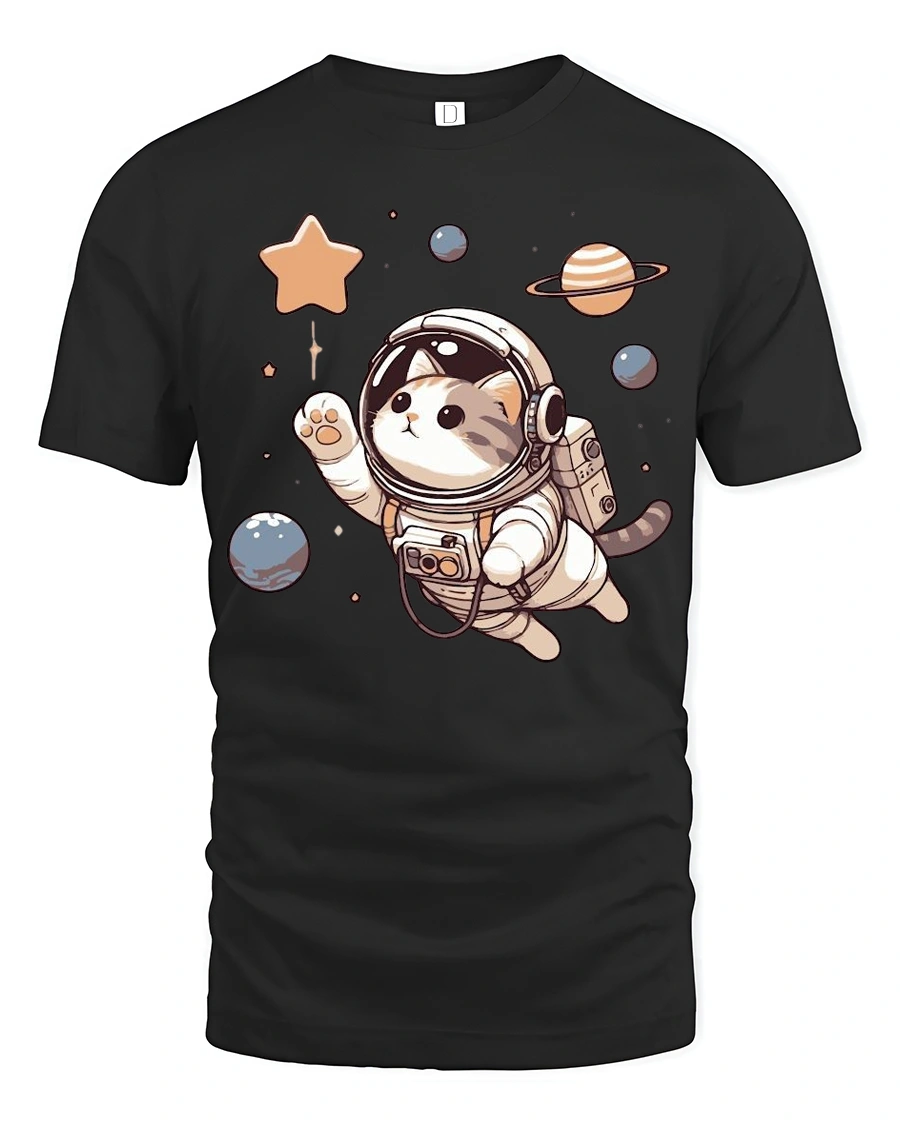 Cute Cat Astronaut Space Graphic T Shirt Cosmic Kitty Tee brings a playful and charming twist to cosmic style.