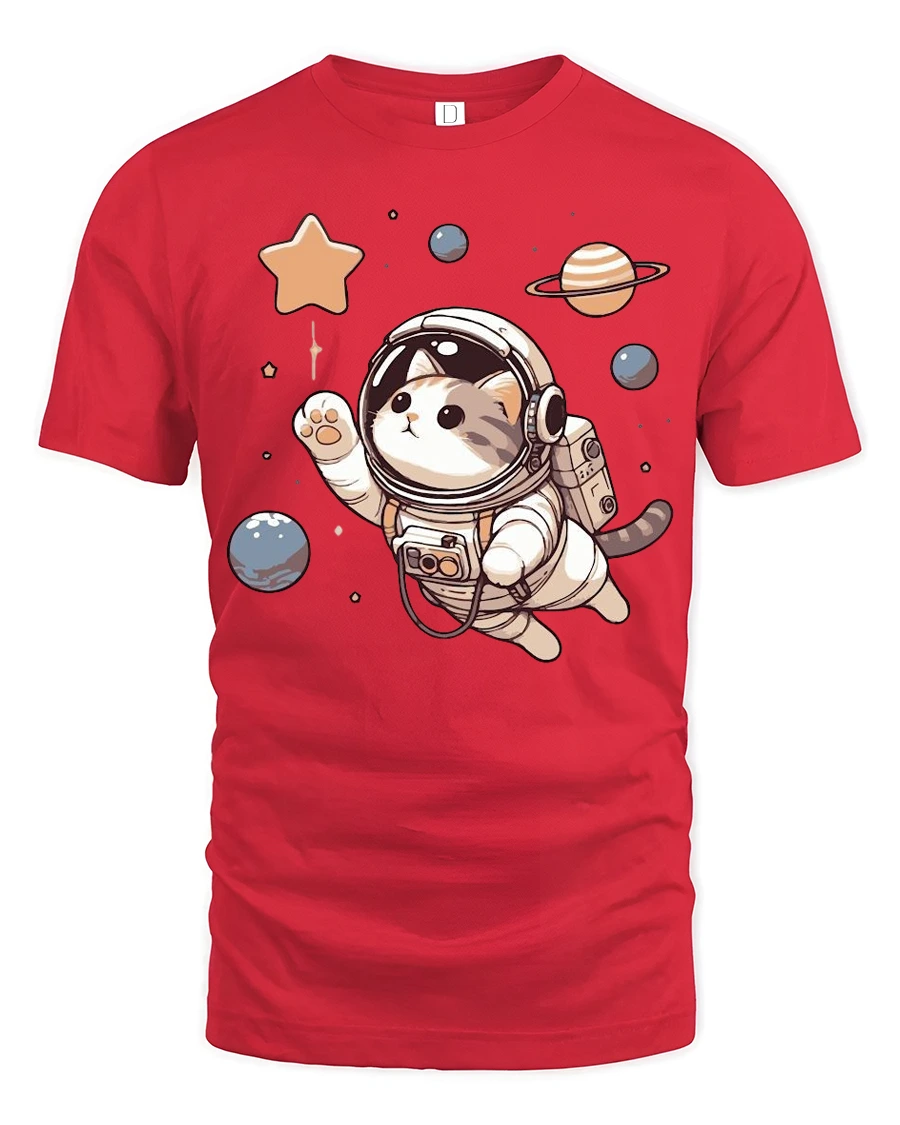 Cute Cat Astronaut Space Graphic T Shirt Cosmic Kitty Tee - red t-shirt on white background