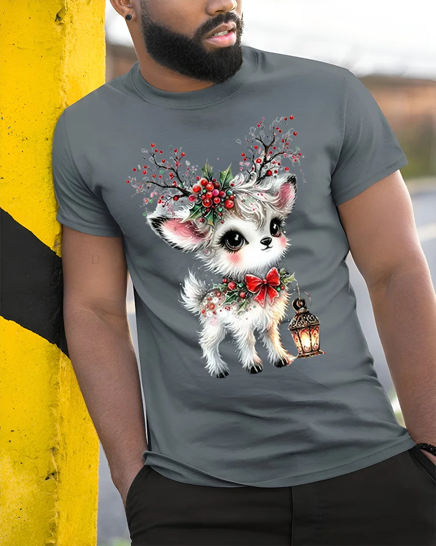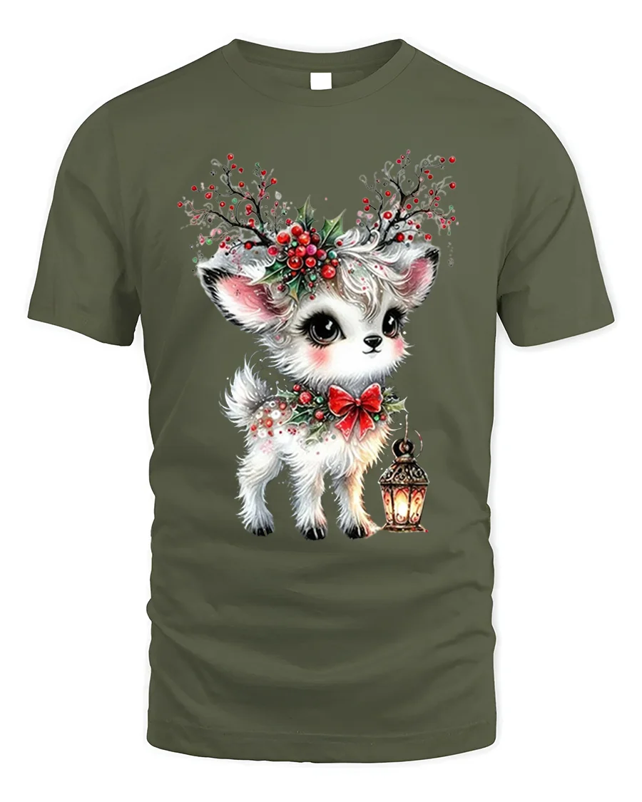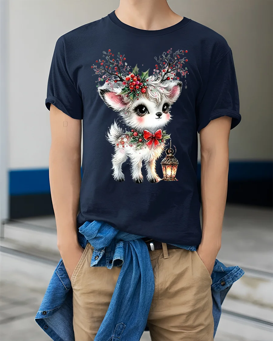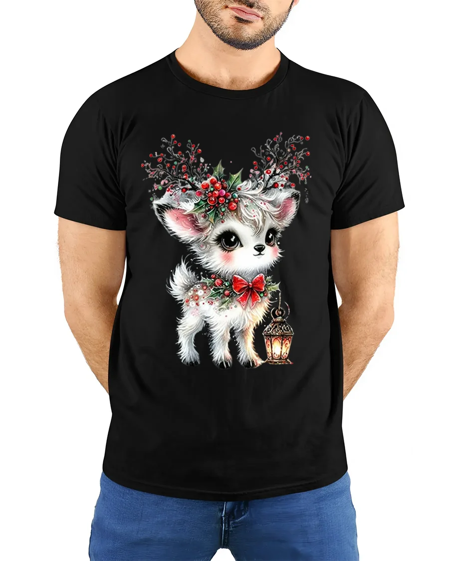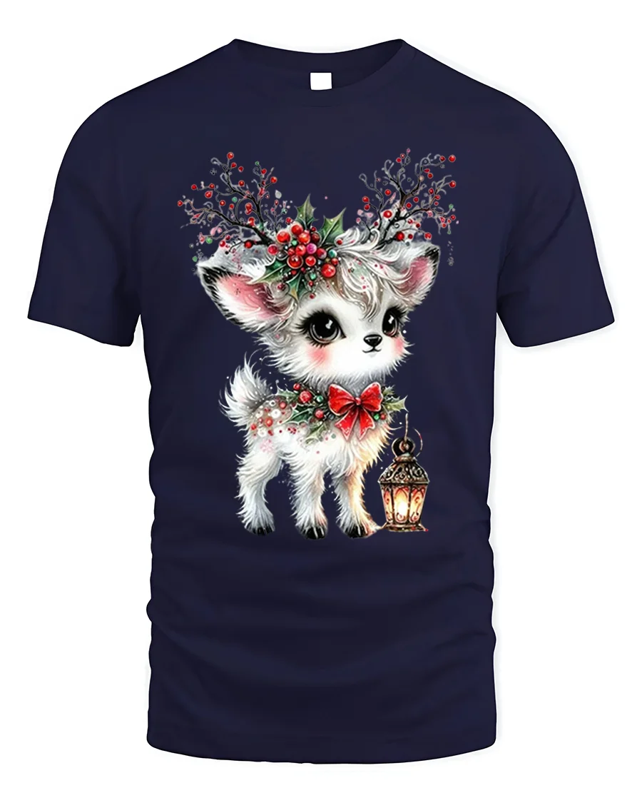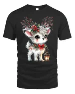 Crafted from soft, breathable cotton, this t-shirt ensures comfort and durability throughout the holidays. The vivid print highlights every lovely detail — from the deer’s expressive eyes to the intricate holly berries and glowing lantern — making it a delightful addition to any Christmas outfit. It’s great for holiday gatherings, festive photo shoots, or simply spreading cheer wherever you go.