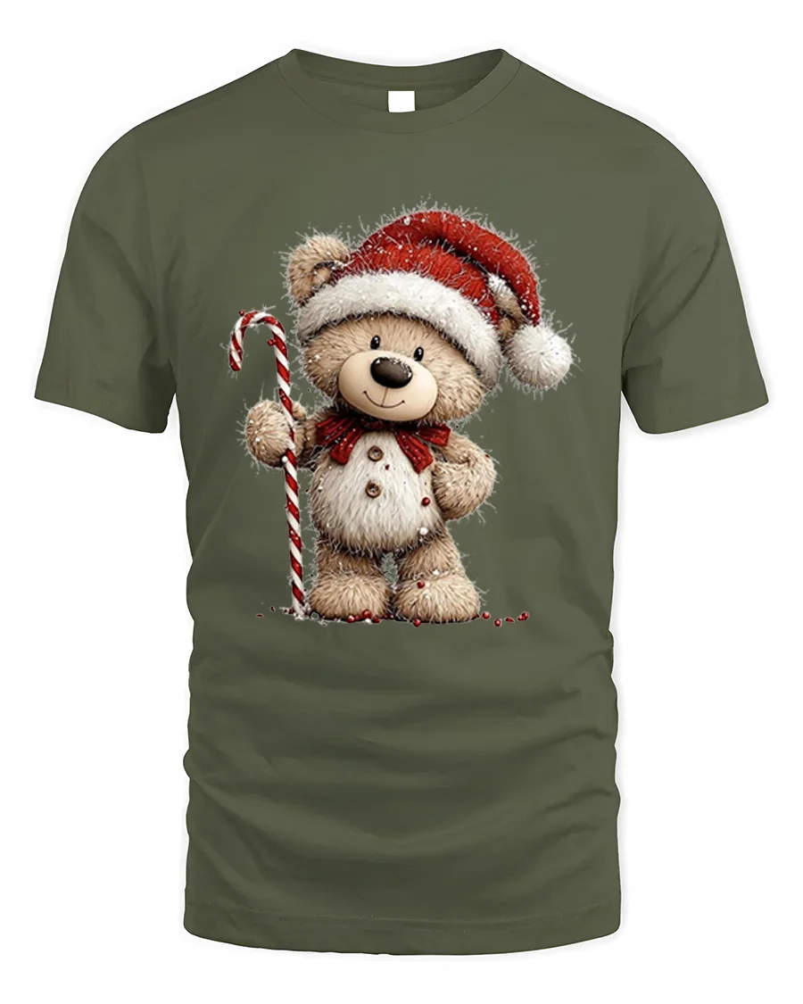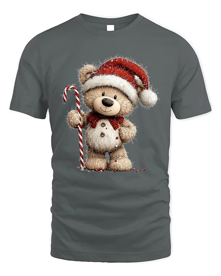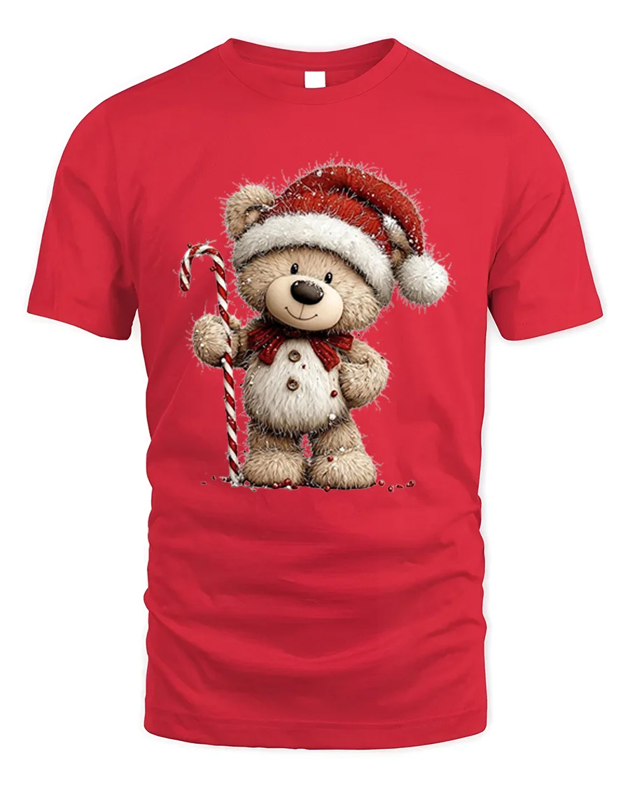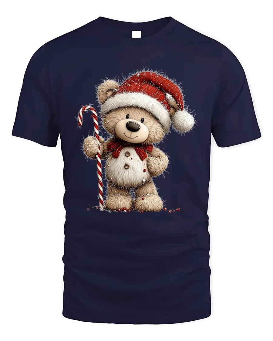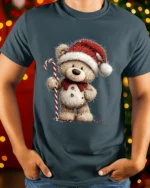 Our Cute Christmas Teddy Bear T-Shirt with Candy Cane Holiday Art brings festive warmth and charm to your seasonal wardrobe. Featuring an adorable teddy bear dressed in a Santa hat and holding a classic candy cane, this cheerful design captures the joyful spirit of Christmas. Its playful style makes it a perfect choice for anyone who loves heartwarming holiday graphics and cozy seasonal vibes.