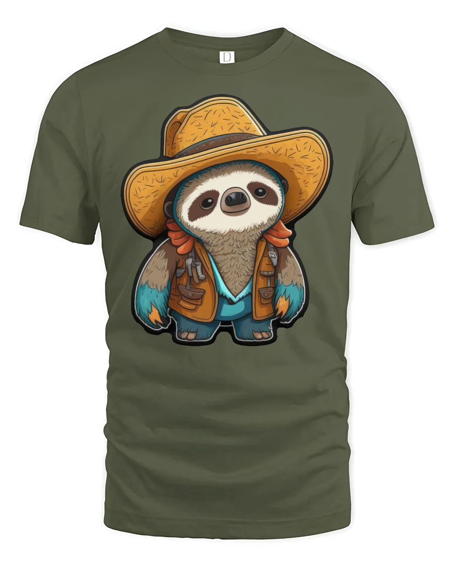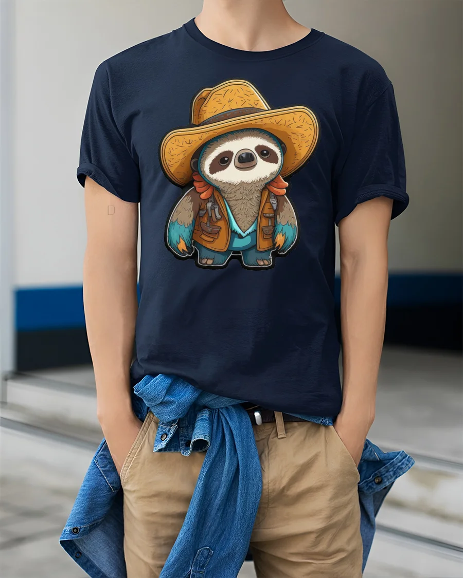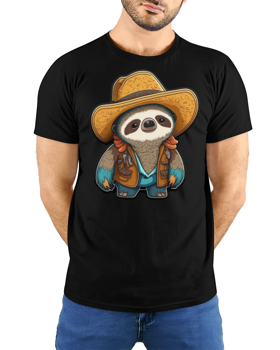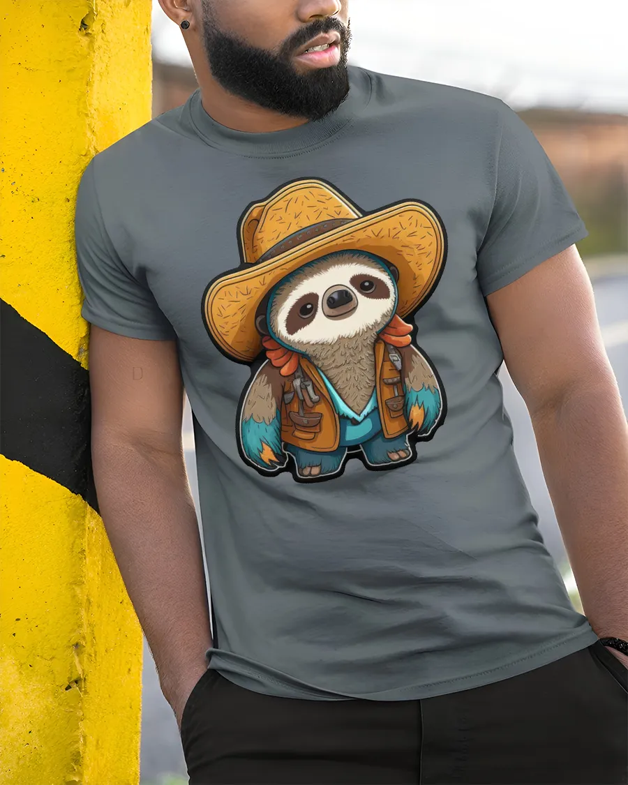 The cowboy sloth graphic tee highlights a gentle balance between cute character art and modern casual style. The detailed illustration brings personality and storytelling into everyday fashion, expressing a laid back attitude with a touch of western adventure spirit. The friendly design evokes comfort, humor, and creativity, making it an enjoyable addition to a relaxed wardrobe collection.