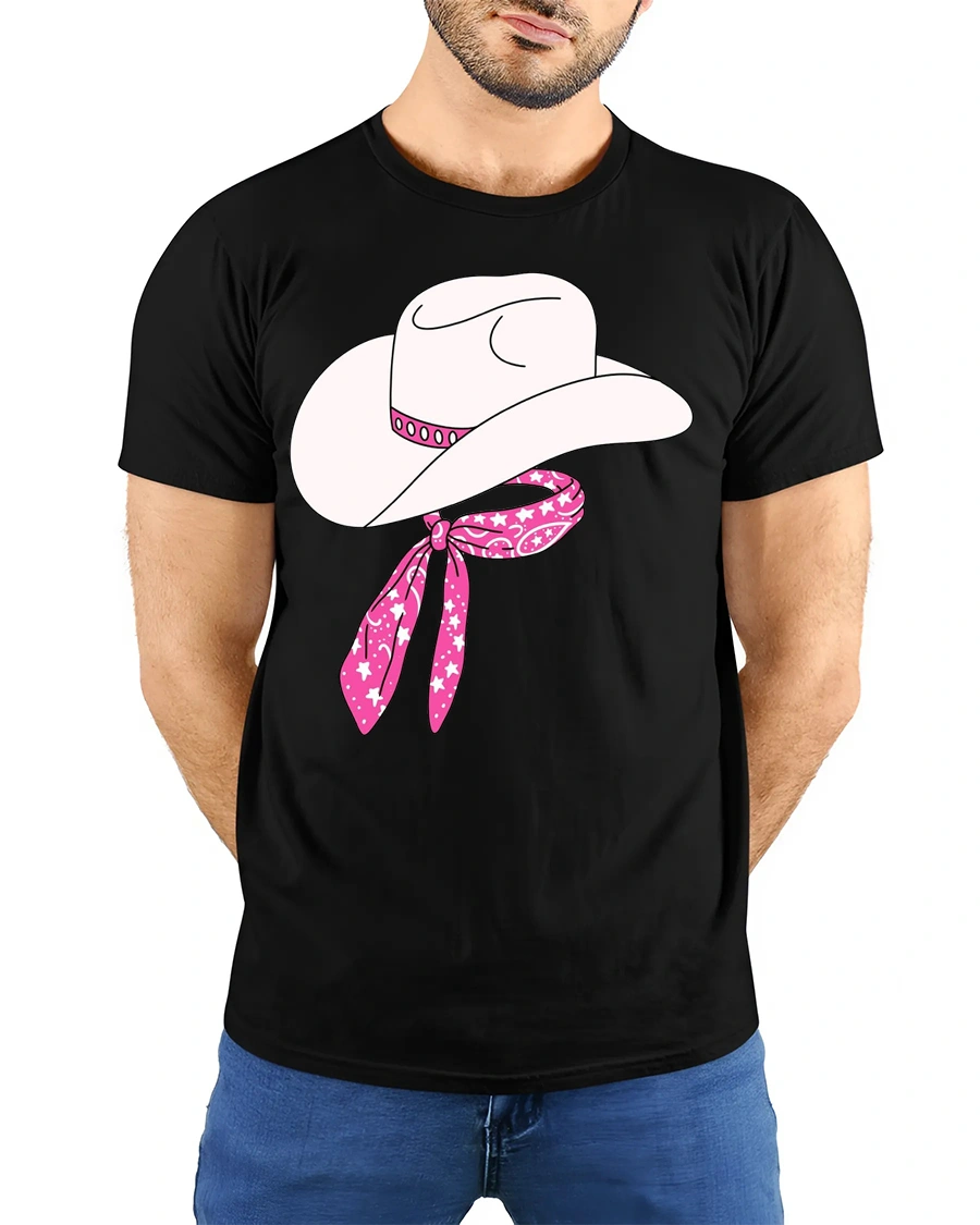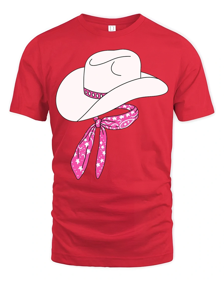 Home Aesthetic Cute Cowgirl Hat With Pink Bandana Western Style T Shirt